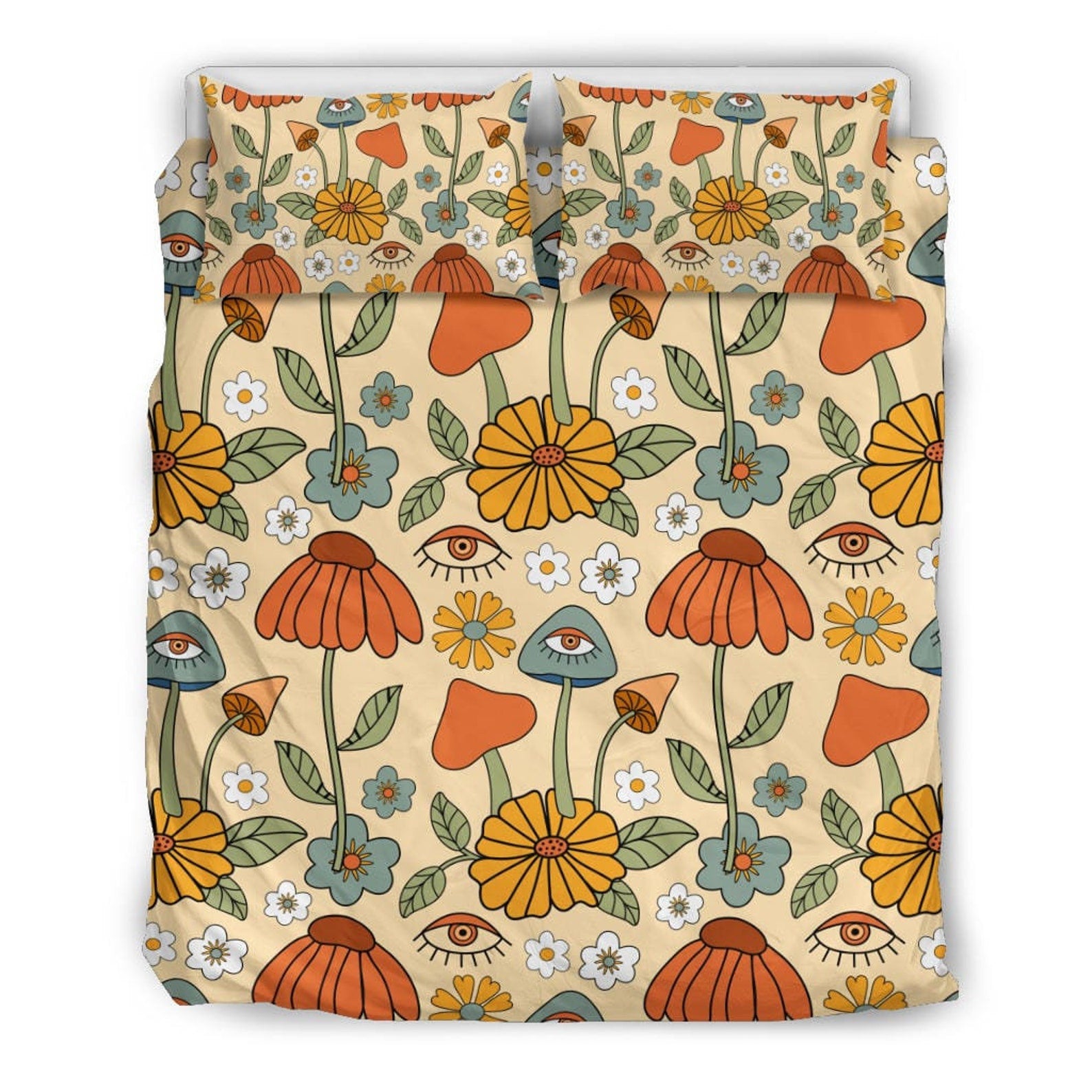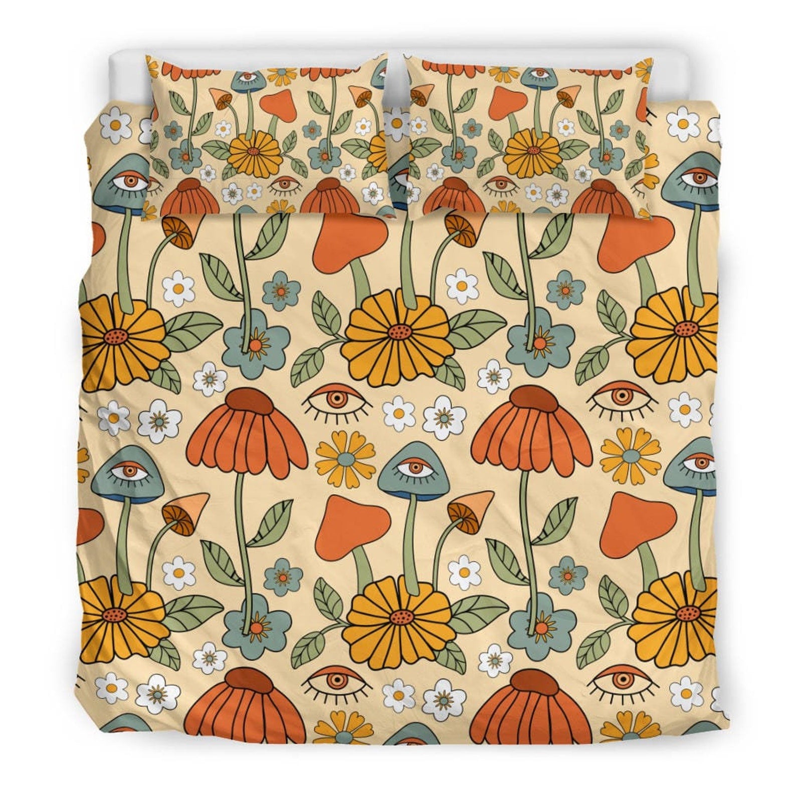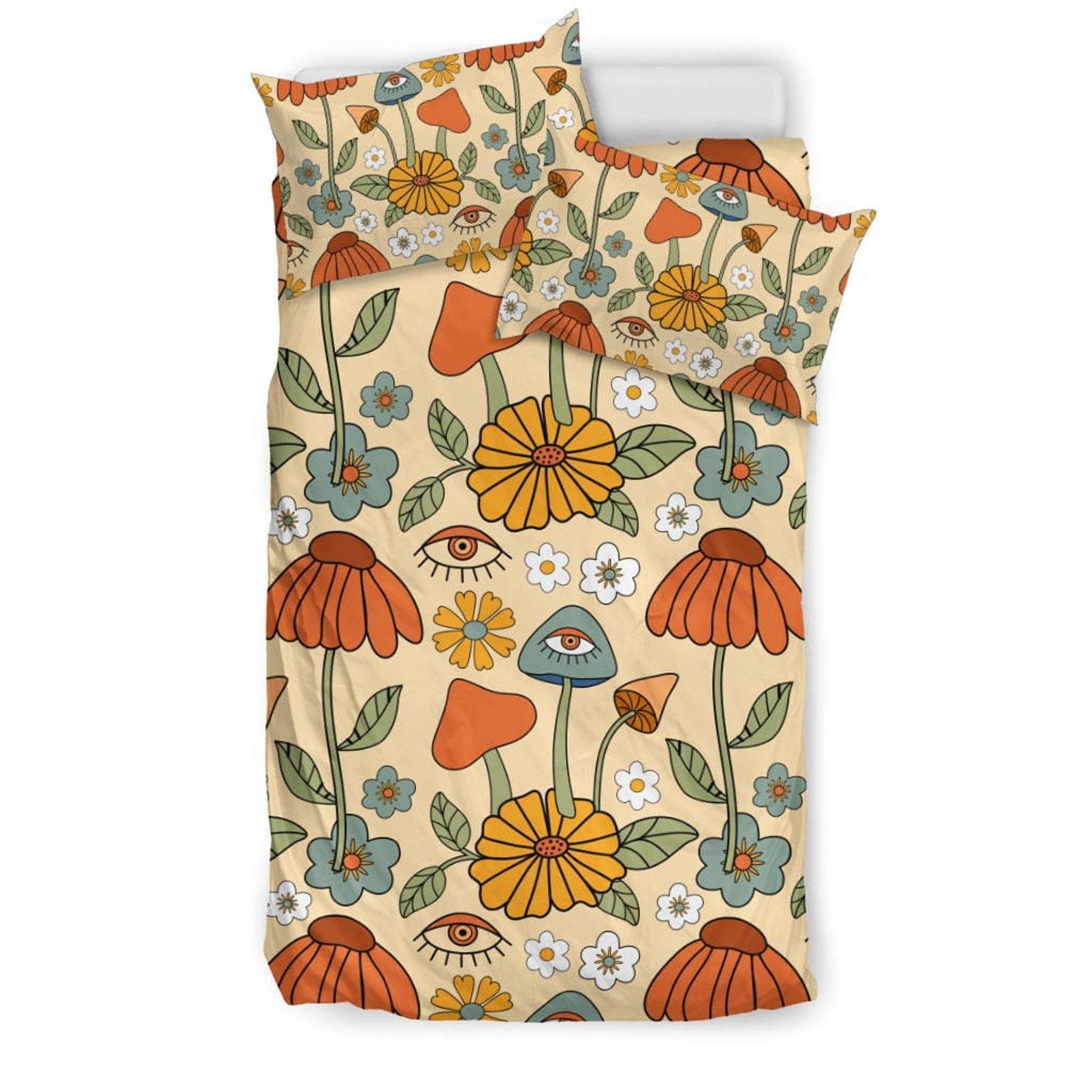 Emerald Blossoms - Mushroom Duvet Cover, Boho Flower Bedding, Quilt Bedding Set For Hippies