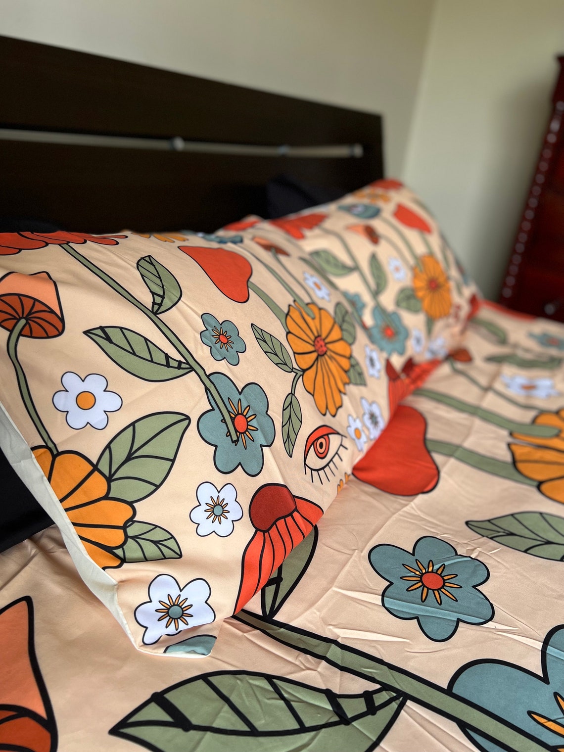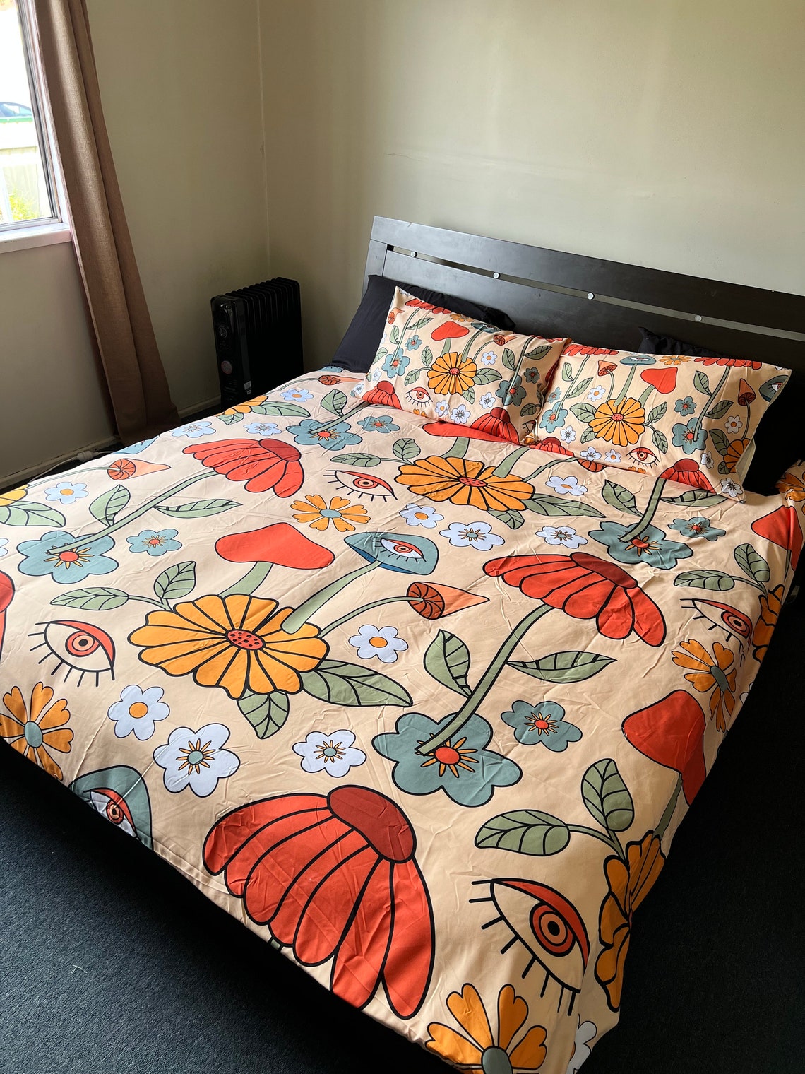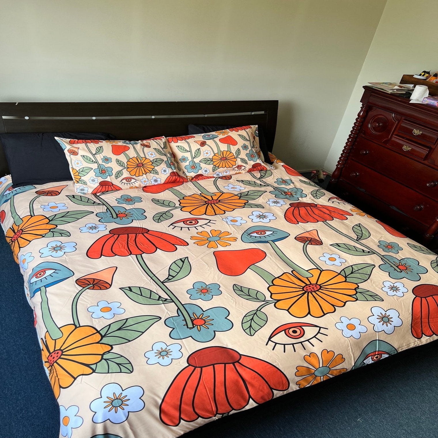 Elevate your bedroom with our Mushroom Duvet Cover, the perfect blend of boho chic and natural charm. Featuring an exotic mushroom and floral motif, this duvet cover is available in Queen, King and Twin sizes. Designed to add bohemian elegance and woodland magic to your space, it is crafted from soft, high-quality fabric for maximum comfort. Ideal for creating a cozy, nature-inspired retreat, this duvet cover adds a unique and stylish touch to any bedroom décor.