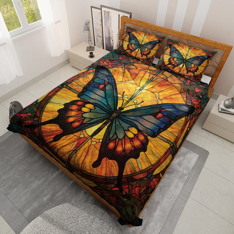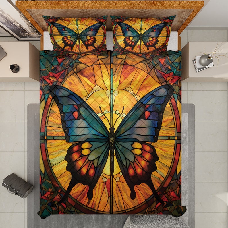 Retro Butterflies Christmas Quilt Bedding Set For Hippies