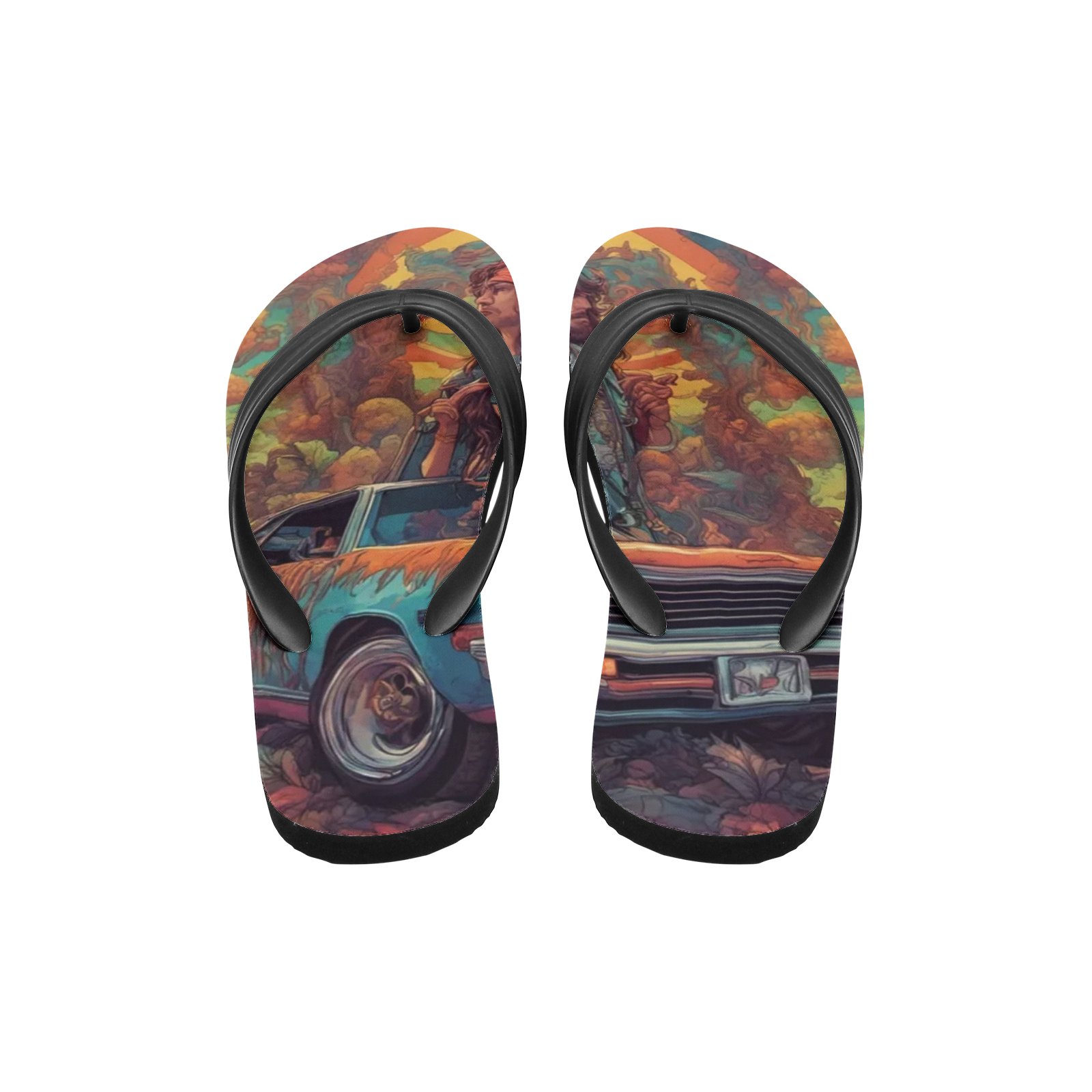 Upgrade your style with our classic car-print unisex flip-flops, perfect for free-spirited, nostalgia-loving hippies. Each pair features vibrant prints of classic cars, blending classic charm with modern comfort. Whether you're hitting the festivals, lounging on the beach, or exploring new adventures, these flip-flops offer durability and style. Embody the spirit of adventure and individuality in every step, celebrating the timeless appeal of classic vibes. Let your shoes reflect your love of all things nostalgic and adventurous with our Retro Car Print Flip-Flops.