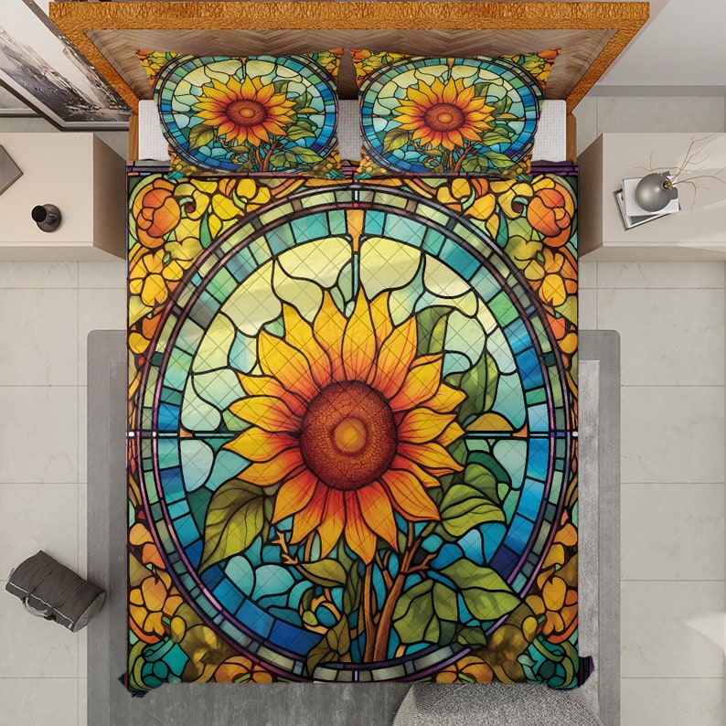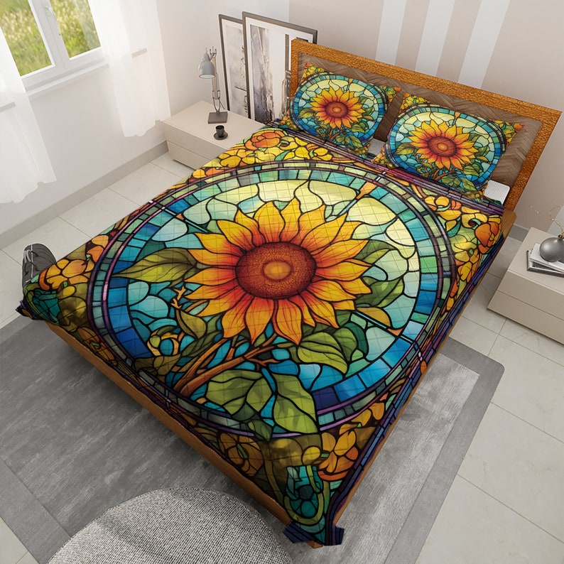 Vintage Colorful Sunflower Bedding Set: This bedding set features a vibrant sunflower pattern, inspired by vintage style with a vibrant color palette. The bold floral pattern brings a nostalgic charm and brightness to your bedroom, perfect for adding a playful and energetic touch to your space.