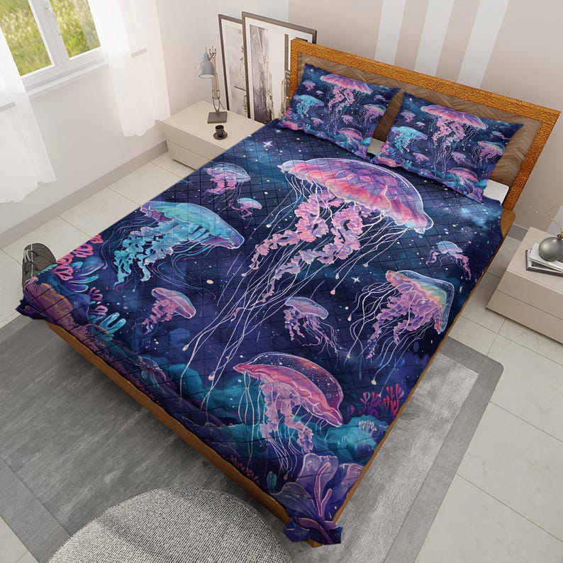 Classic Jellyfish Christmas Bedding Set: This bedding set features a vintage-inspired design with a fun jellyfish print and playful Christmas elements. The vibrant, underwater pattern adds a playful and unique touch to your holiday decor, creating a cozy and eye-catching atmosphere for the season.