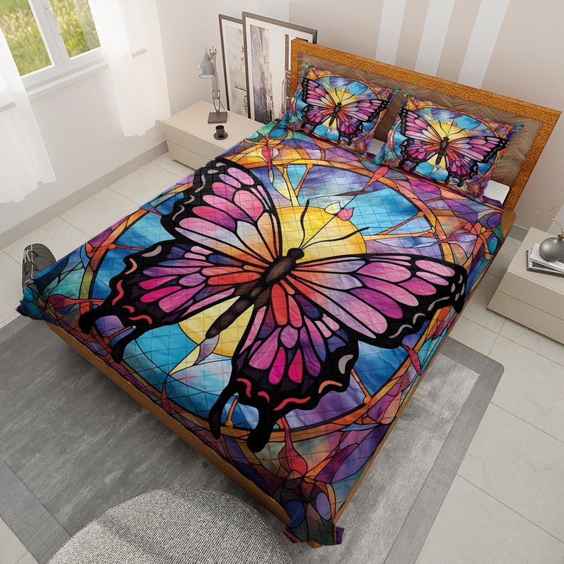 Vintage Monarch Butterfly Hippie Bedding Set: This bedding set features a vintage design with vibrant monarch butterflies. This quirky pattern has a free-spirited, hippie feel, adding a bold and colorful touch to your bedroom decor.