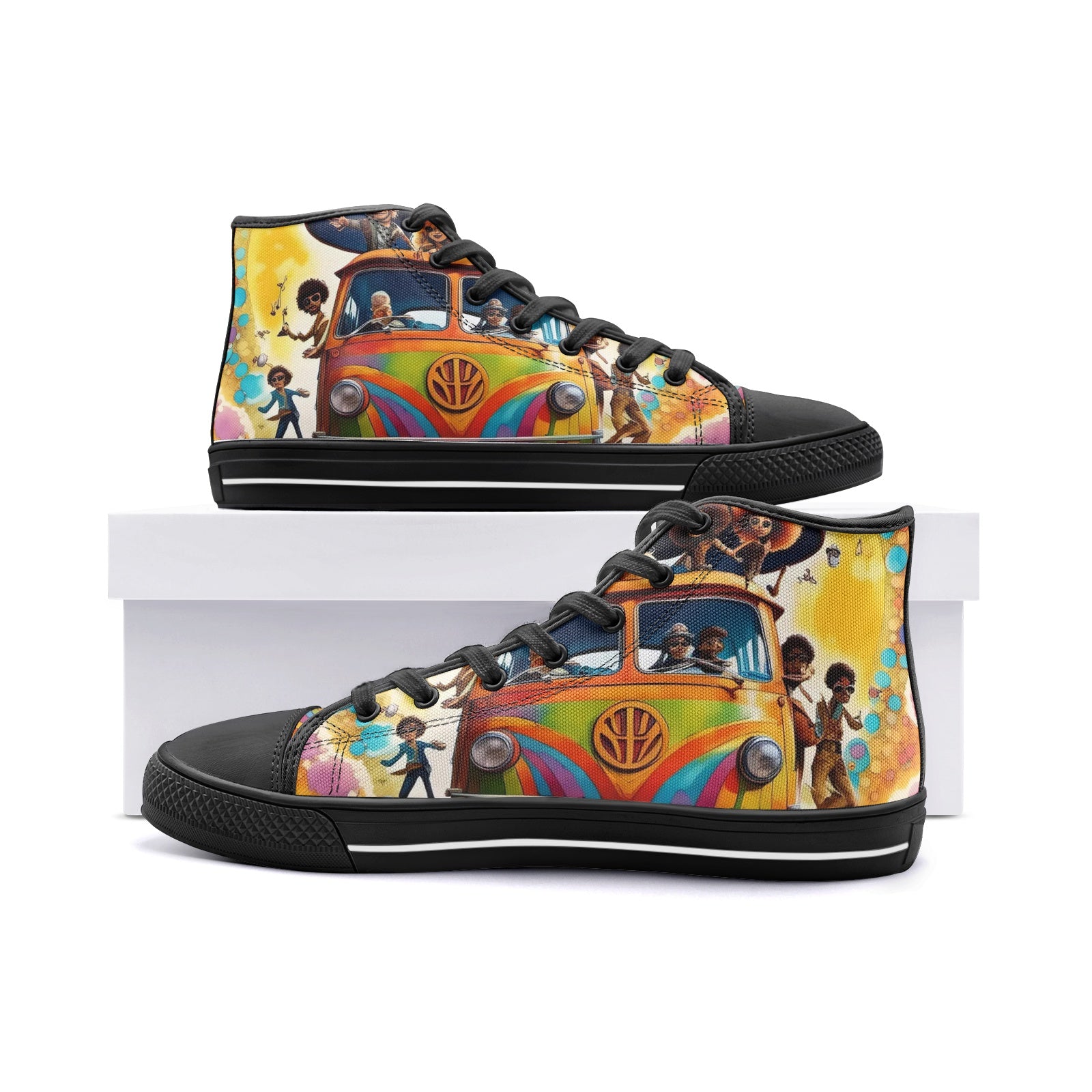 Embark on a classic road trip adventure with the Road Trips On Kombi Van Unisex High Top Canvas. Inspired by the iconic Volkswagen Kombi truck, these shoes embody the spirit of freedom and exploration. With a vibrant design that celebrates the open road and scenic routes, each shoe is a tribute to the passion for travel and nostalgia