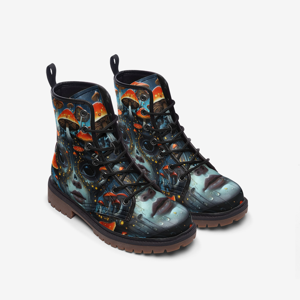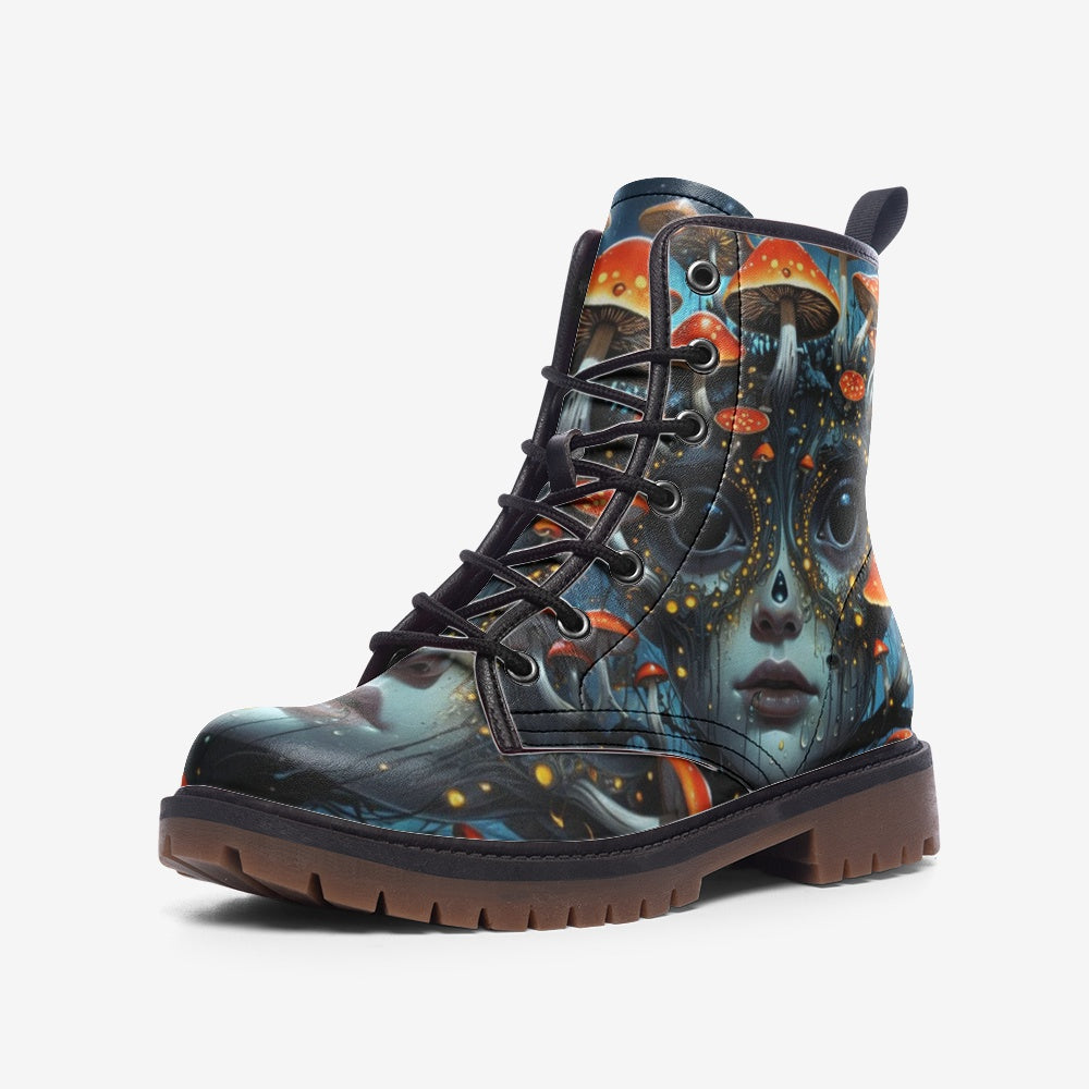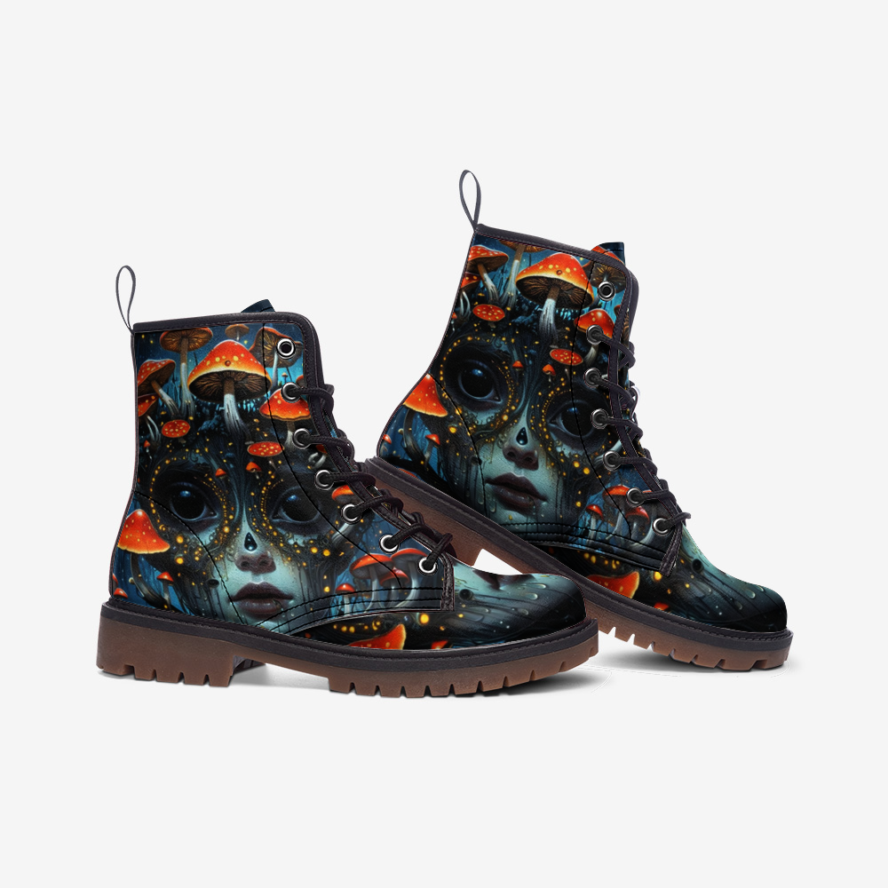 Emerald Blossoms - Spotted Mushroom Creature Casual Leather Lightweight Boots For Hippies