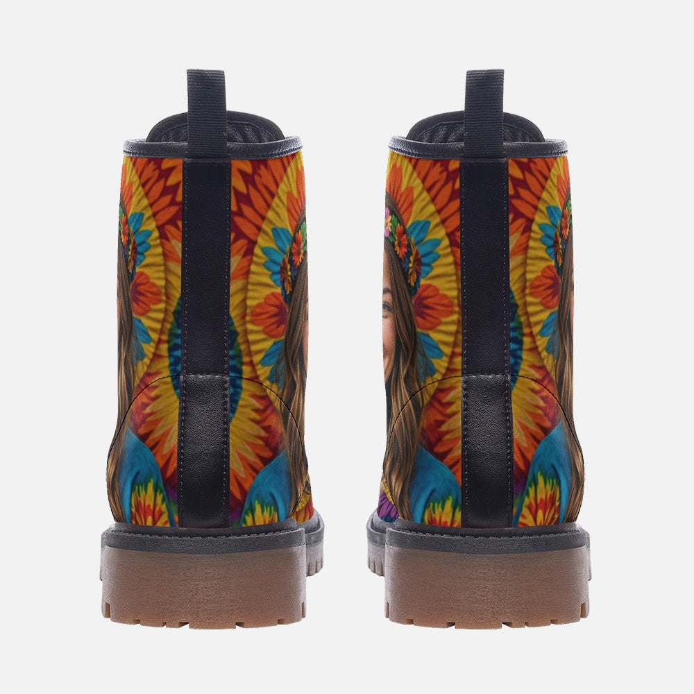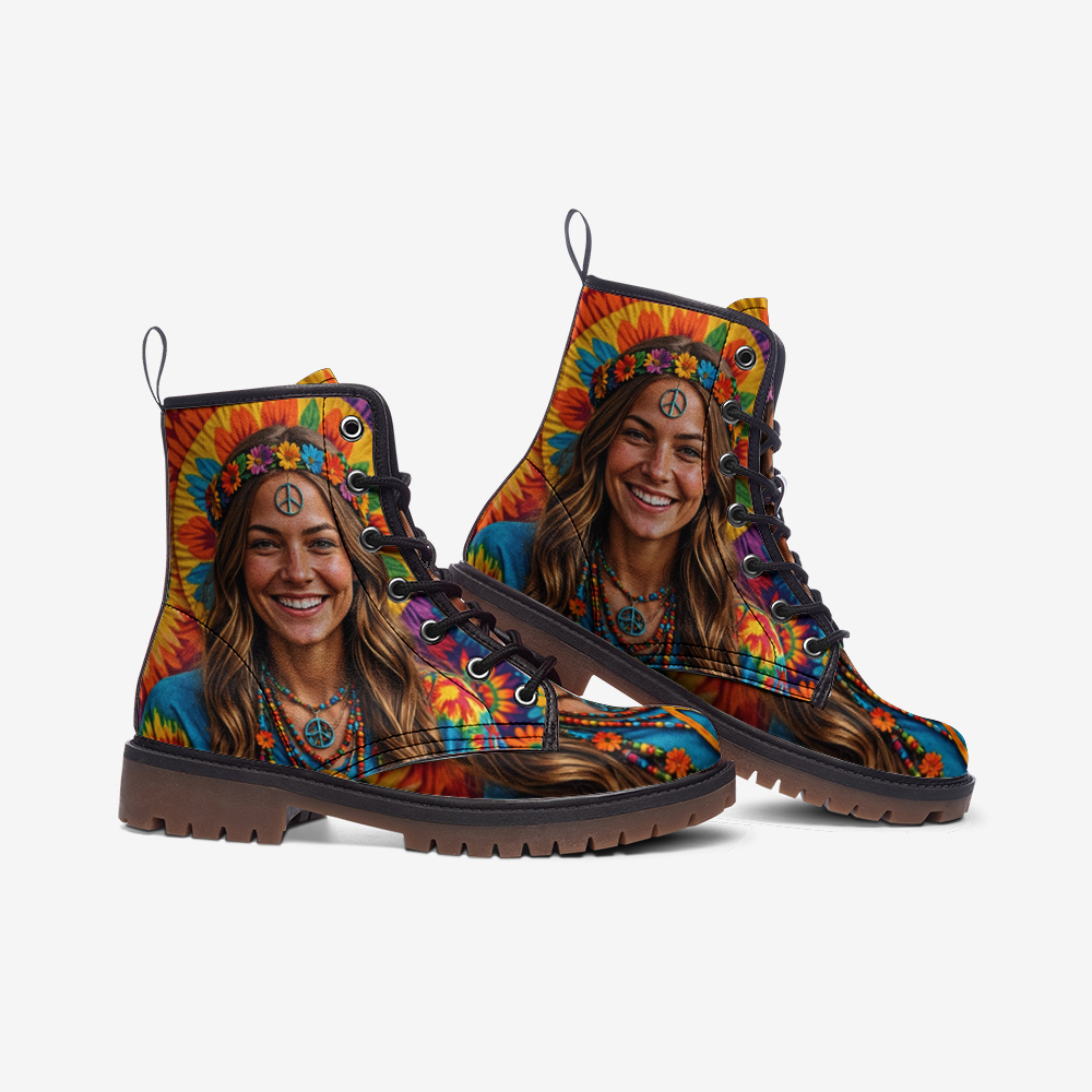 Show off your free spirit with the Stay Wild Flower Girl casual lightweight leather boots from Emerald Blossoms. Featuring a vibrant floral design that celebrates the beauty of nature and a carefree attitude, these boots are the perfect combination of style and comfort. Crafted from soft, lightweight leather, they offer a comfortable fit while making a bold, free-spirited statement. Ideal for those who love to express their individuality and stay connected to nature, these boots add a quirky charm to any outfit. Go on an adventure and let your wild flower spirit bloom!