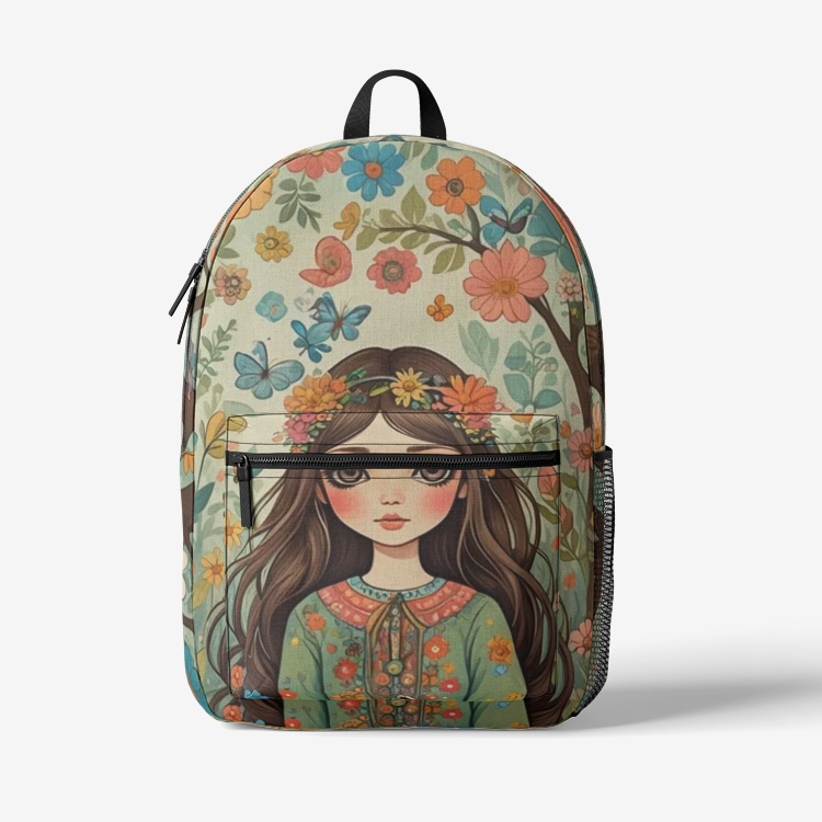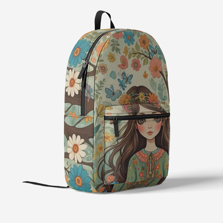 Discover the whimsical charm of the Emerald Blossoms Children's Flower Backpack for Hippies. Designed with vibrant florals and practicality, this backpack is perfect for those with an adventurous spirit of all ages. Carry your essentials in style and celebrate the hippie ethos wherever you go.