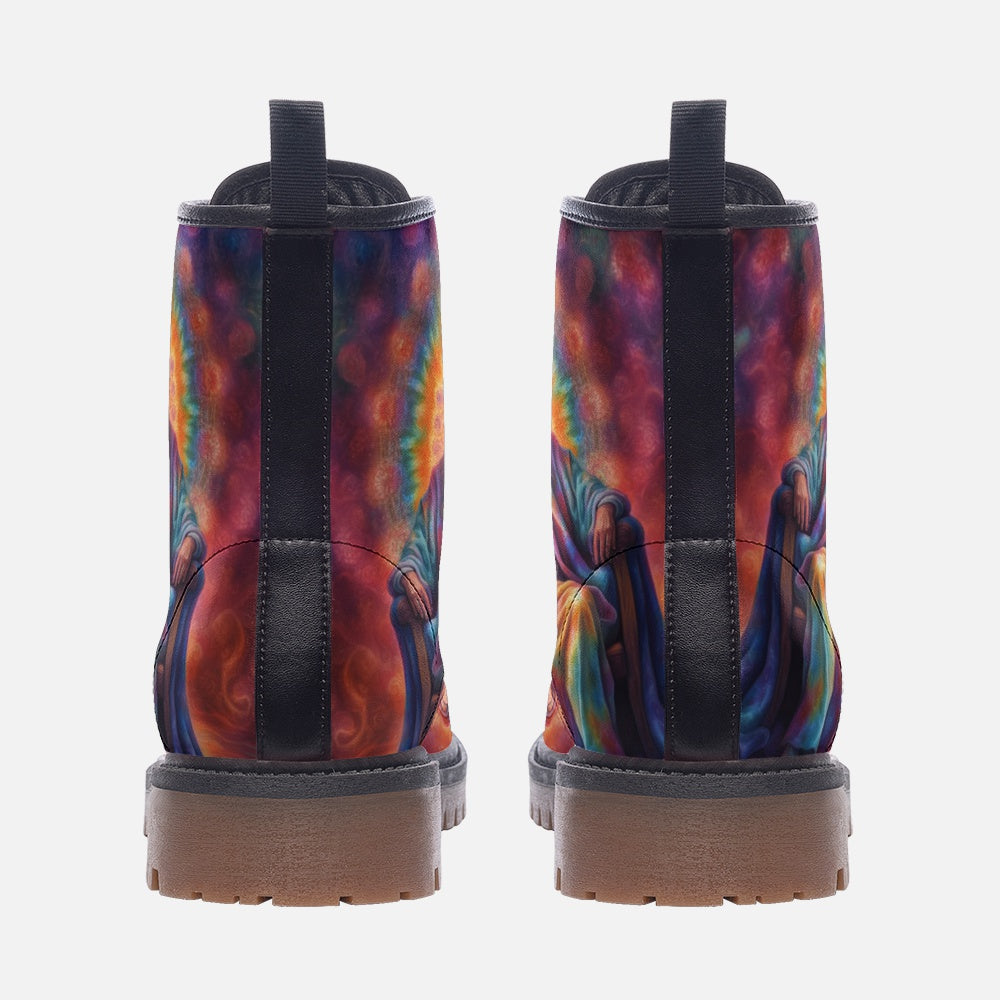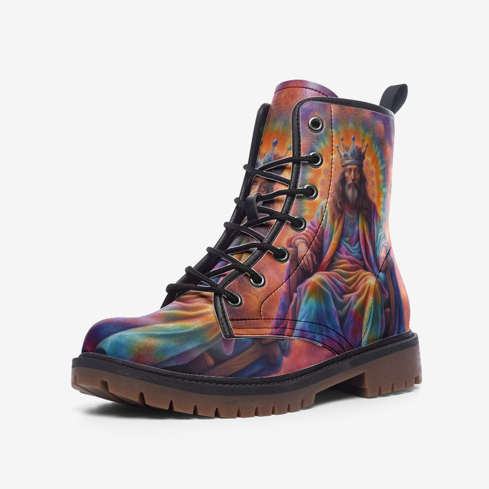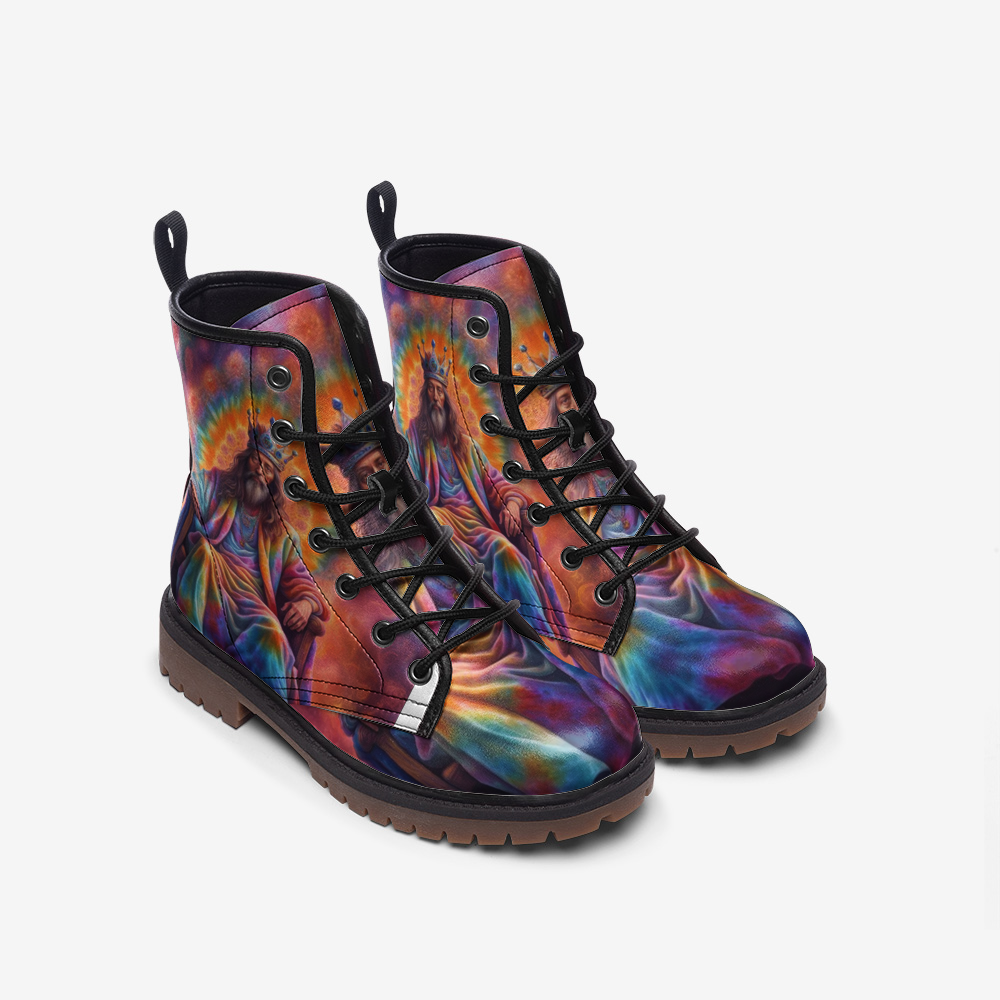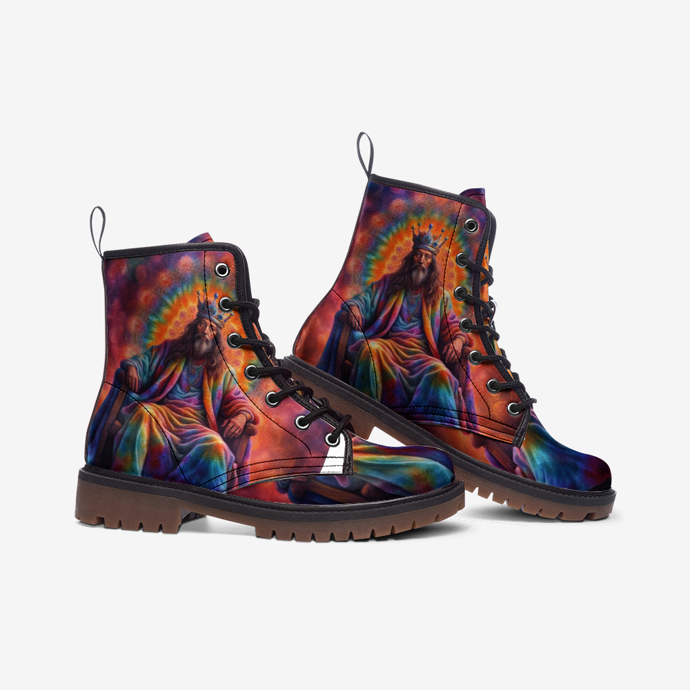 Emerald Blossoms - The King Of Throne, Tie Dye Costume Casual Leather Lightweight Boots For Hippies