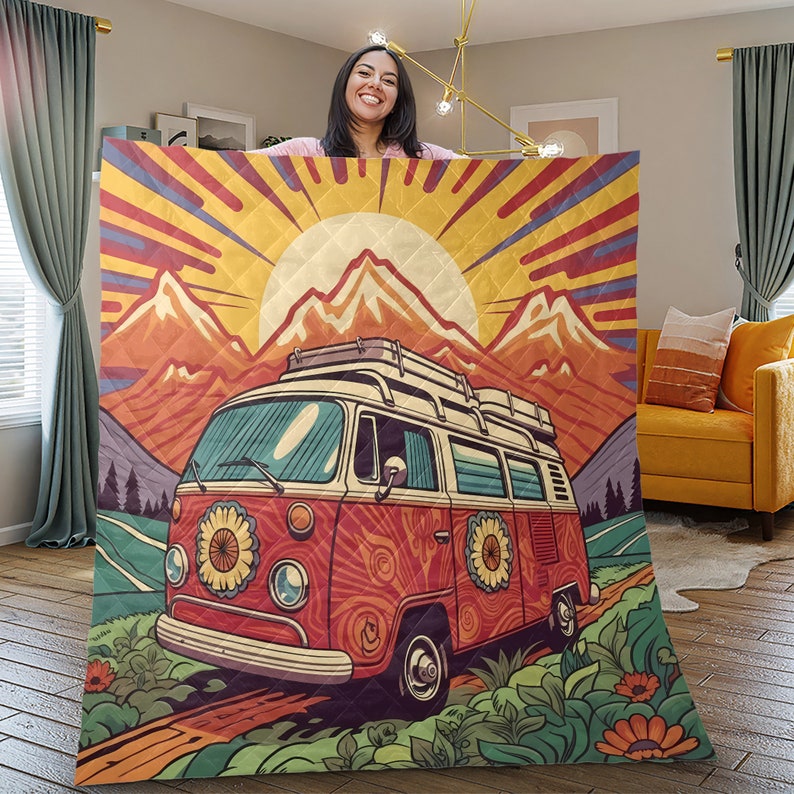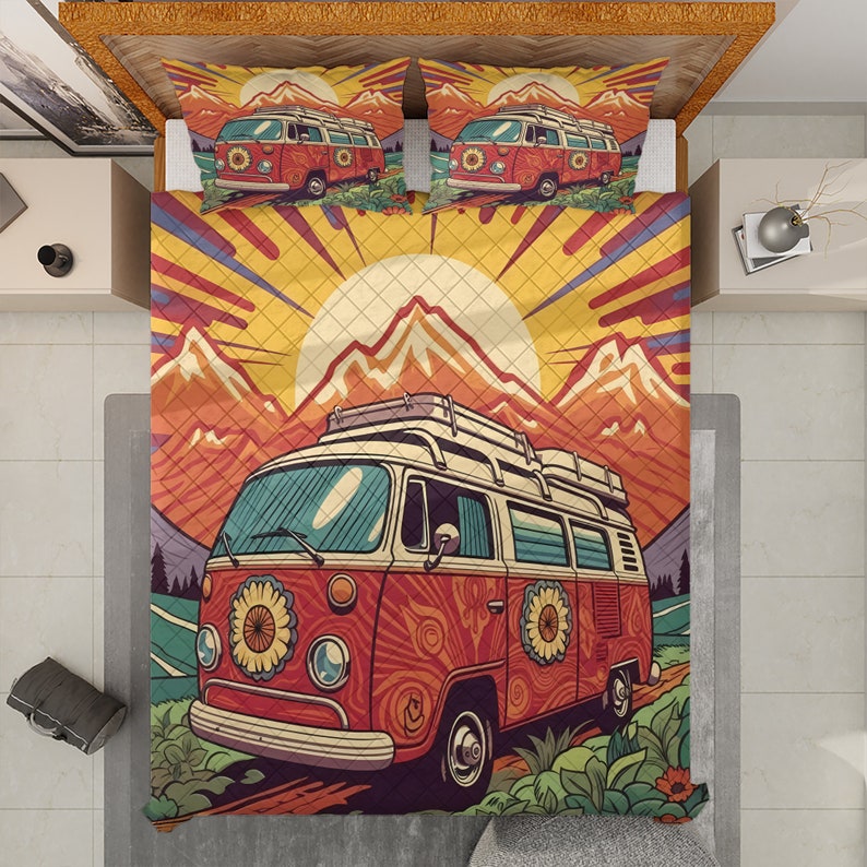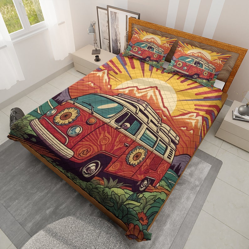 Vintage Campervan Christmas Bedding Set: This bedding set features a charming vintage campervan design with festive Christmas elements. The retro pattern adds a quirky and cozy touch to your holiday decor, perfect for creating a unique and playful atmosphere in your bedroom.