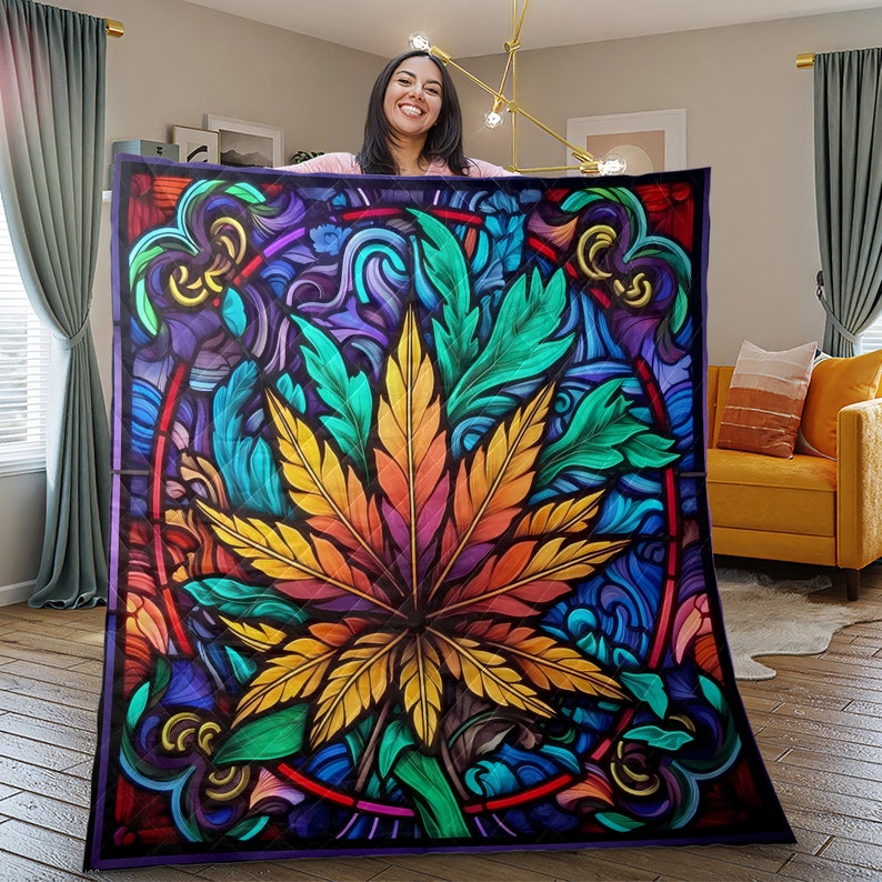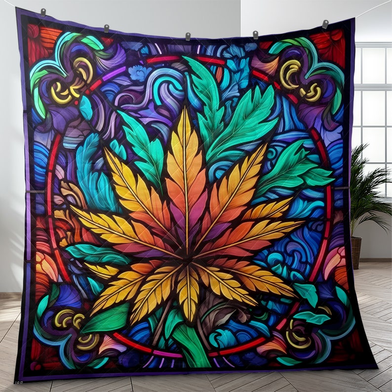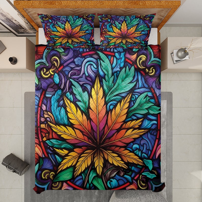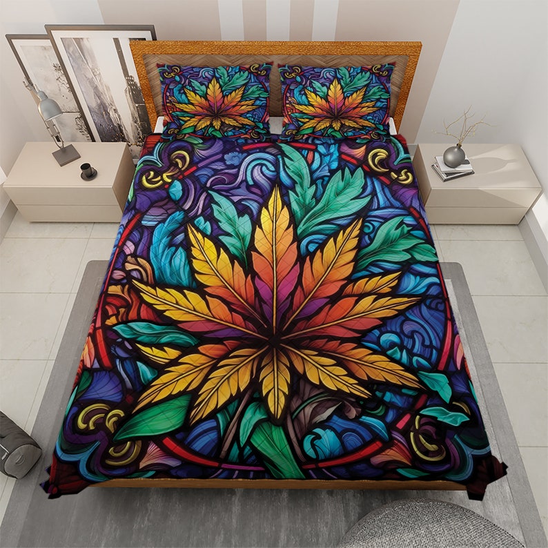 Vintage Cannabis Weed Hippie Style Christmas Quilt Bedding Set
