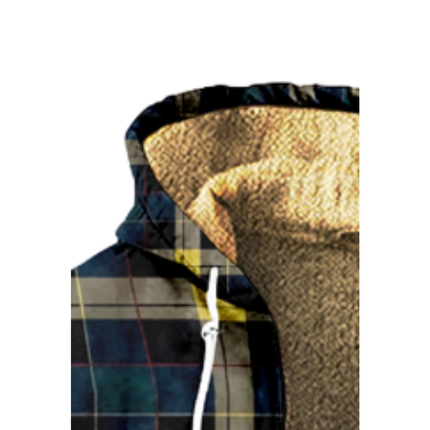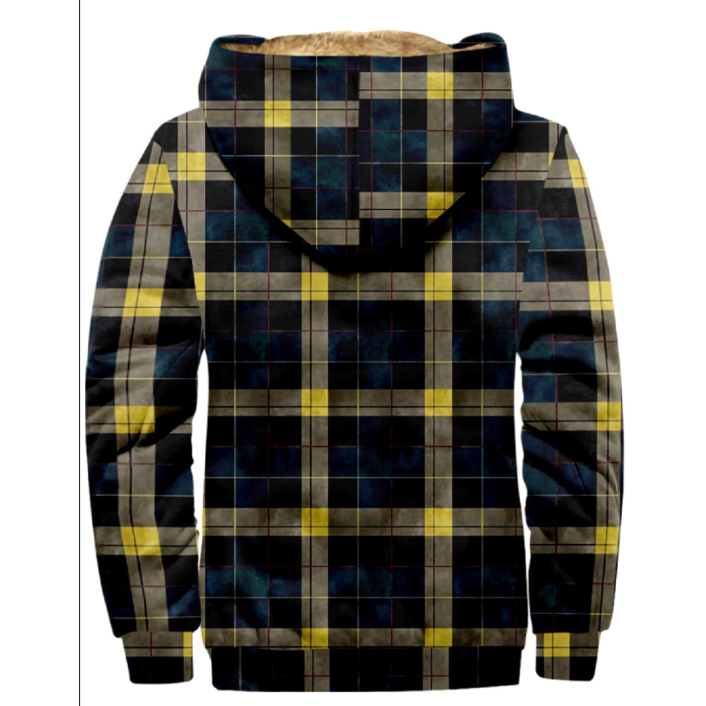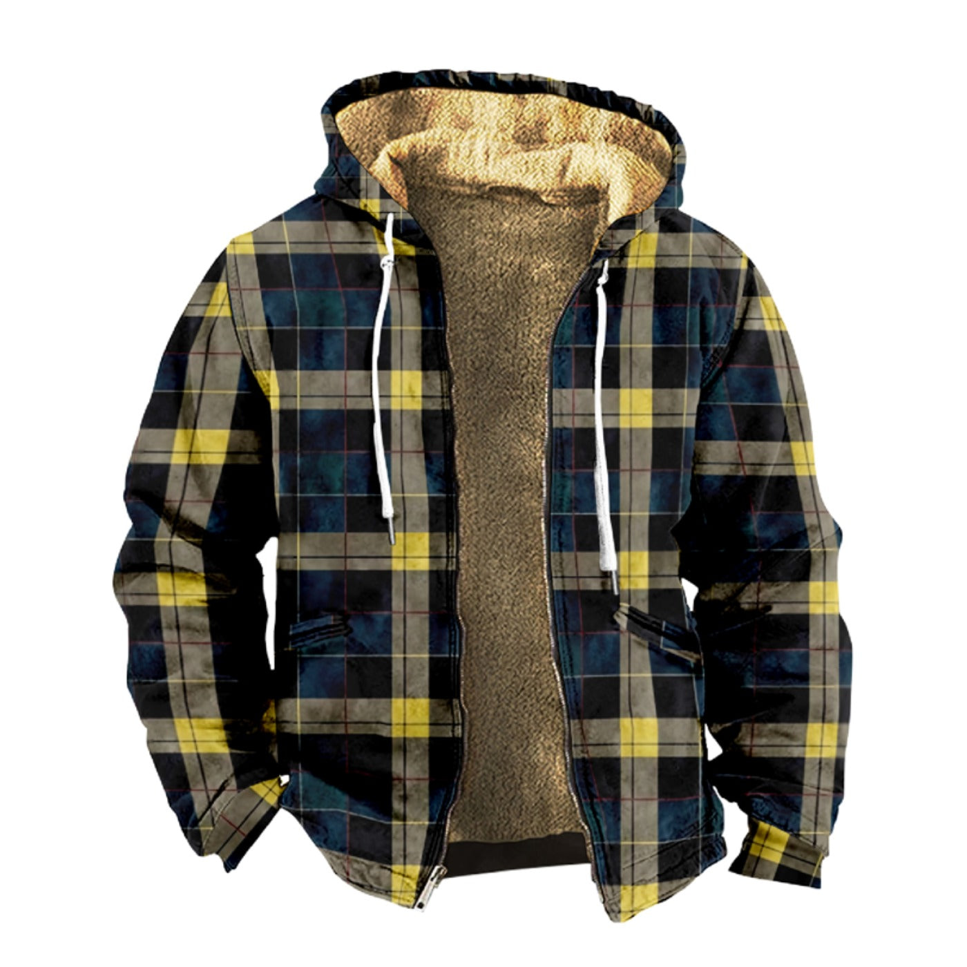 Emerald Blossoms - Vintage Dark Blue, Yellow Plaid Pattern Print Wool Hooded Jackets For Hippie