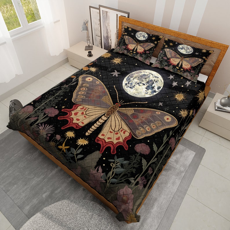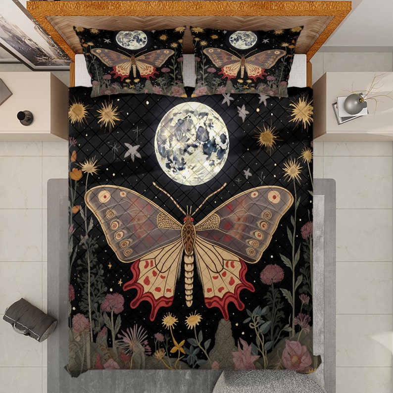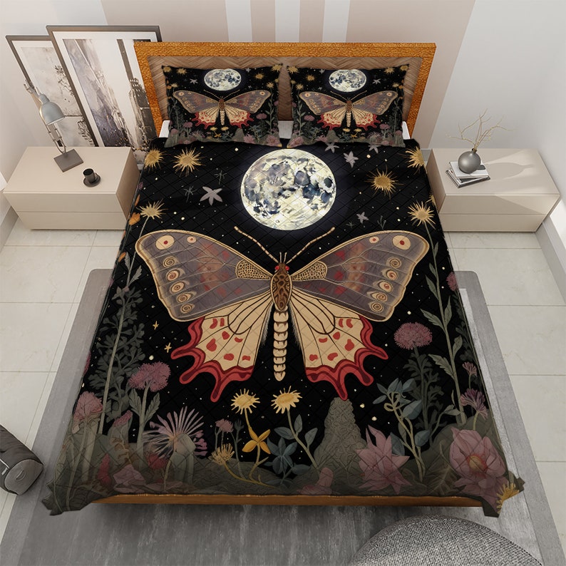 Celestial Moon & Butterfly Vintage Bedding Set: This bedding set features a vintage design featuring a moon and butterfly motif. The pattern combines these elements in a unique and decorative way, adding a special touch to your bedroom décor.