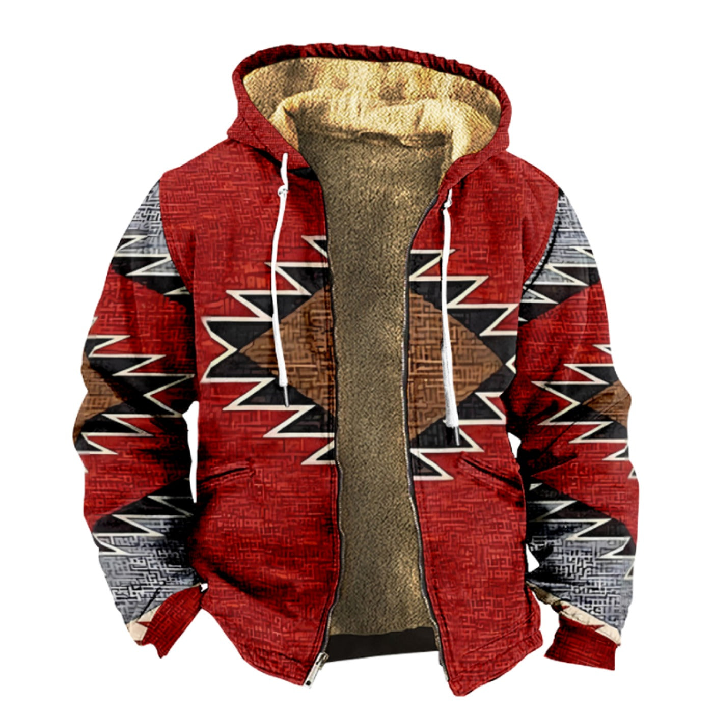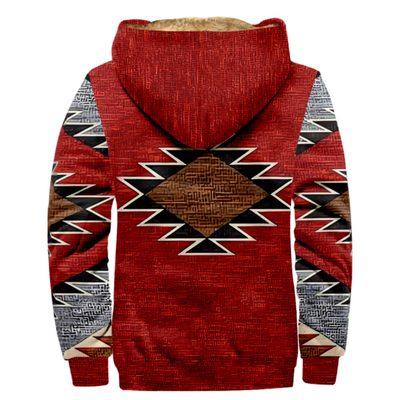Emerald Blossoms - Vintage Native American Red Aztec Pattern Print Wool Hooded Jackets For Hippie