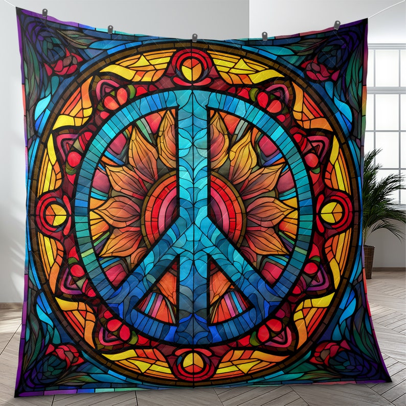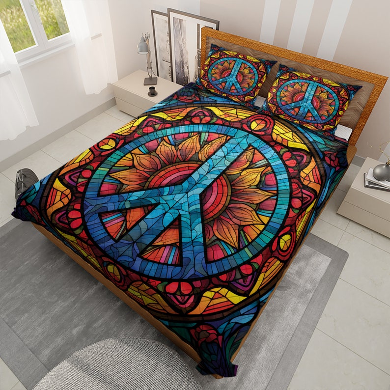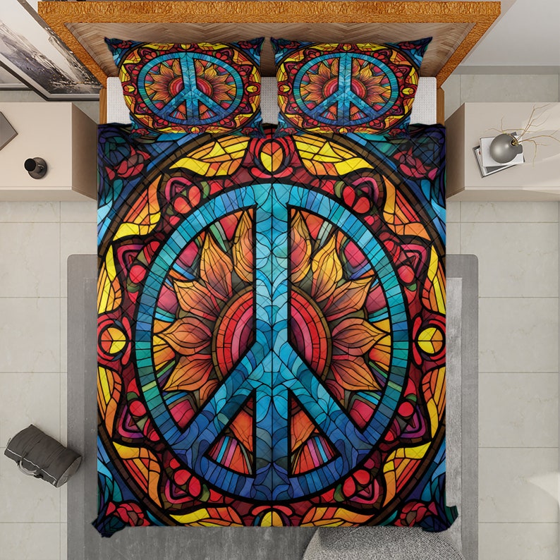 Vintage Peace Sign Hippie Style Christmas Quilt Bedding Set
