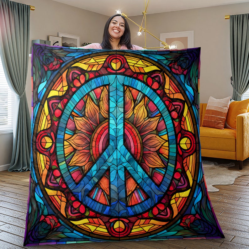 Vintage Peace Hippie Christmas Bedding Set: This bedding set features a classic design with a peace and holiday motif. Combine classic hippie style with Christmas atmosphere, creating a unique, cheerful touch to your holiday decorations, perfect for creating a warm and mixed atmosphere.