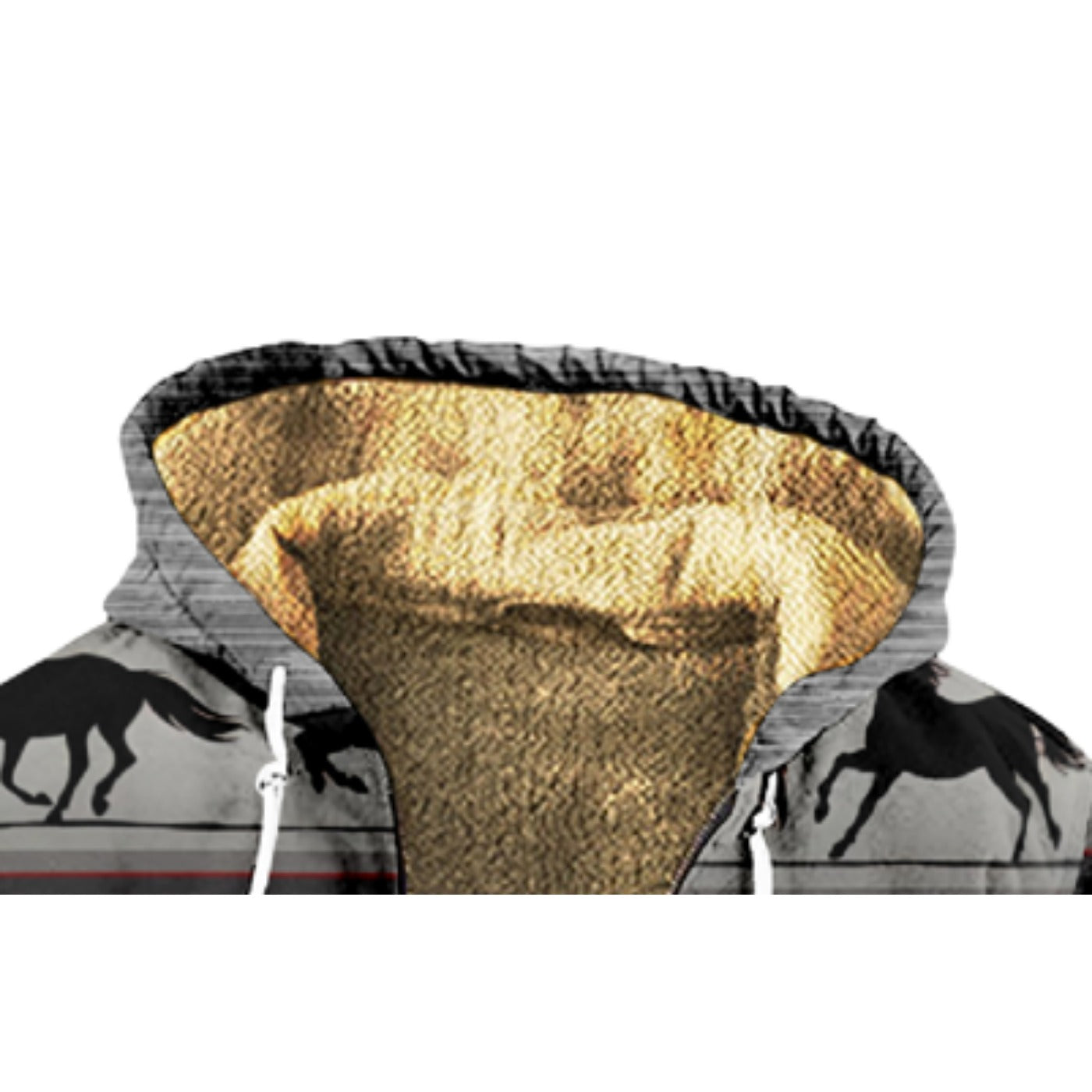Ride the wave with our Tribal Wild Horse Wool Hooded Jacket, designed for the hippie free spirit. This cozy wool coat features a dynamic wild horse print with a tribal touch, combining vintage charm with modern warmth and a touch of rugged elegance. Stay warm and stylish this autumn and winter with our Men’s and Women’s Thick Wool Hooded Double-Layer Jackets. Perfect for casual outings, these jackets offer: