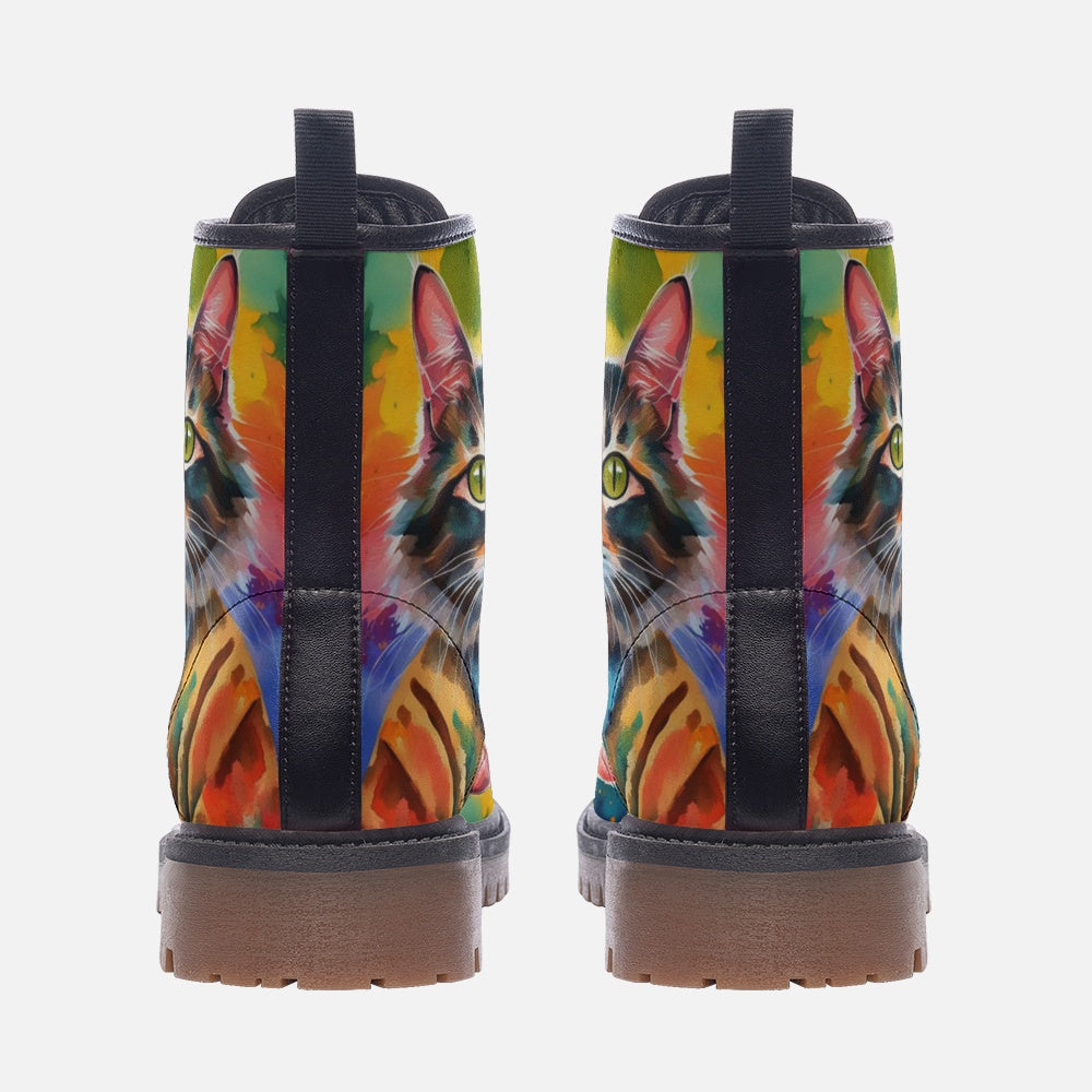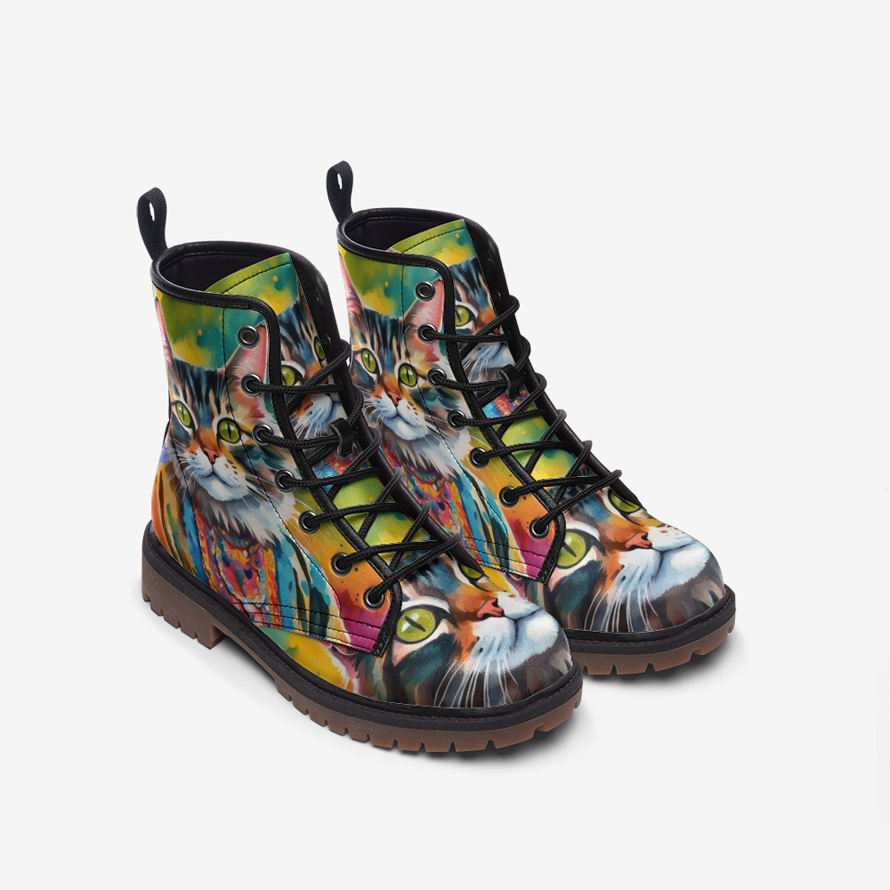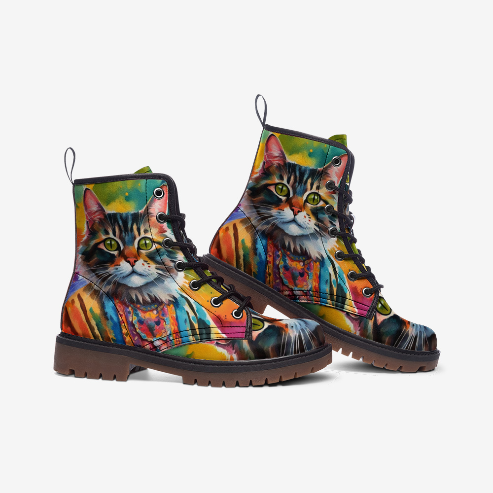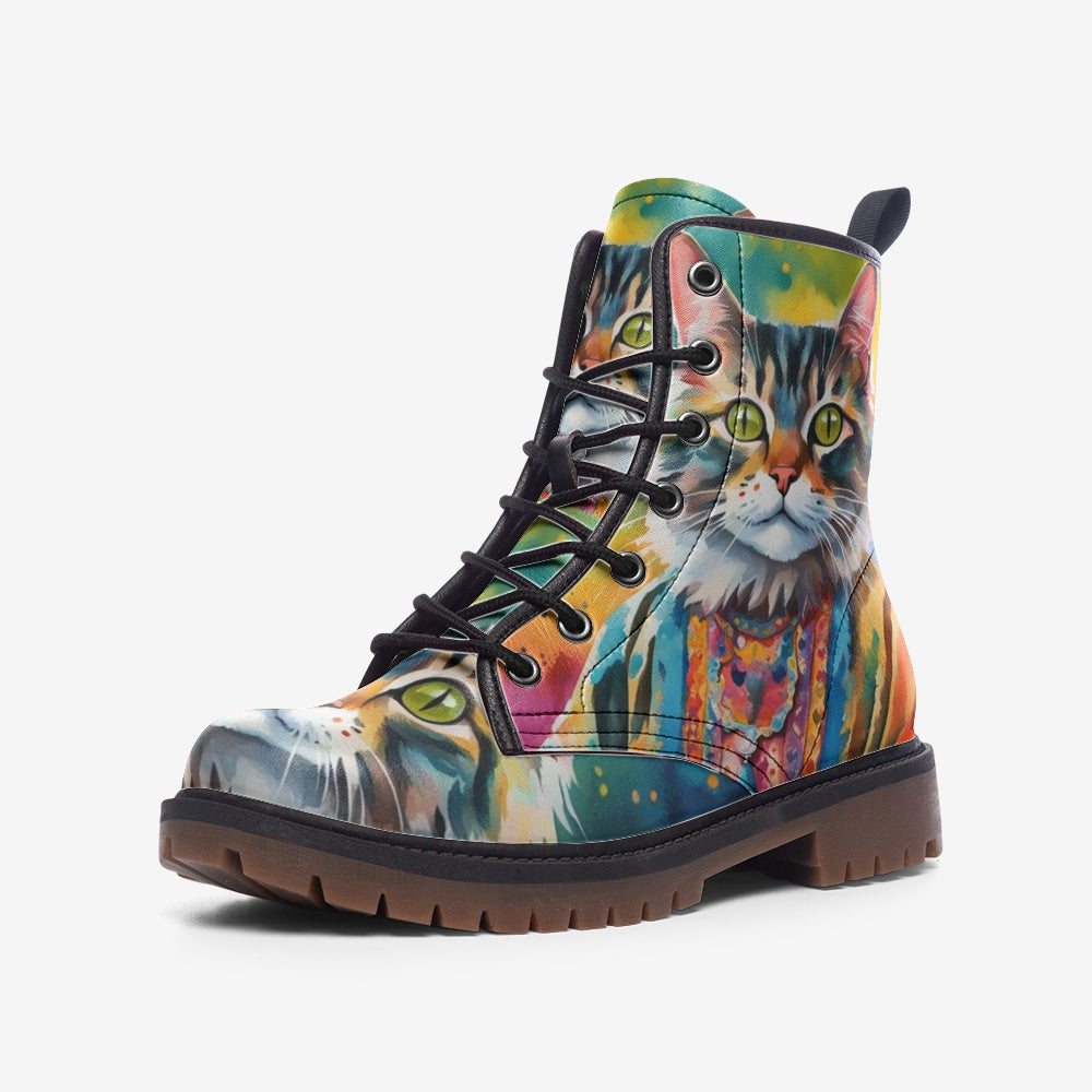 Introducing Watercolor Cat Art on Emerald Blossoms lightweight leather boots, a fusion of artistic expression and bohemian comfort. These unique boots feature a subtle watercolor cat design on a supple leather base, embodying the creativity and free spirit beloved by hippies. Perfect for art lovers, every step taken on these boots is a step forward in personality and style. Capture the charm of handmade beauty and wanderlust with incredibly unique sophistication in these one-of-a-kind boots.