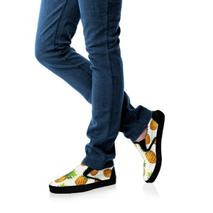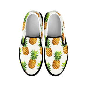 The Black and White Pineapple Slip-On Sneakers feature a playful pineapple design on a glossy black base. With a stretchy, easy-to-slip fit and a soft, lightweight lining, these sneakers combine fun tropical style with all-day comfort and ease.