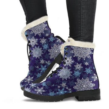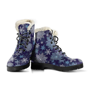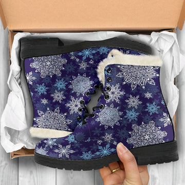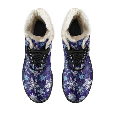 Emerald Blossoms - White Snowflake Print Comfy Faux Fur Boots For Winter Season
