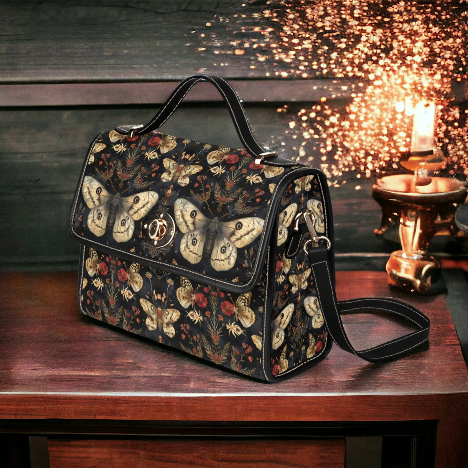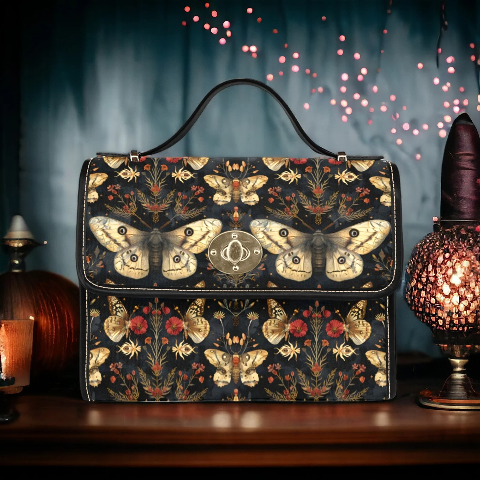 Emerald Blossoms - Cottage Goth Moths Flowers Satchel Bag For Hippies