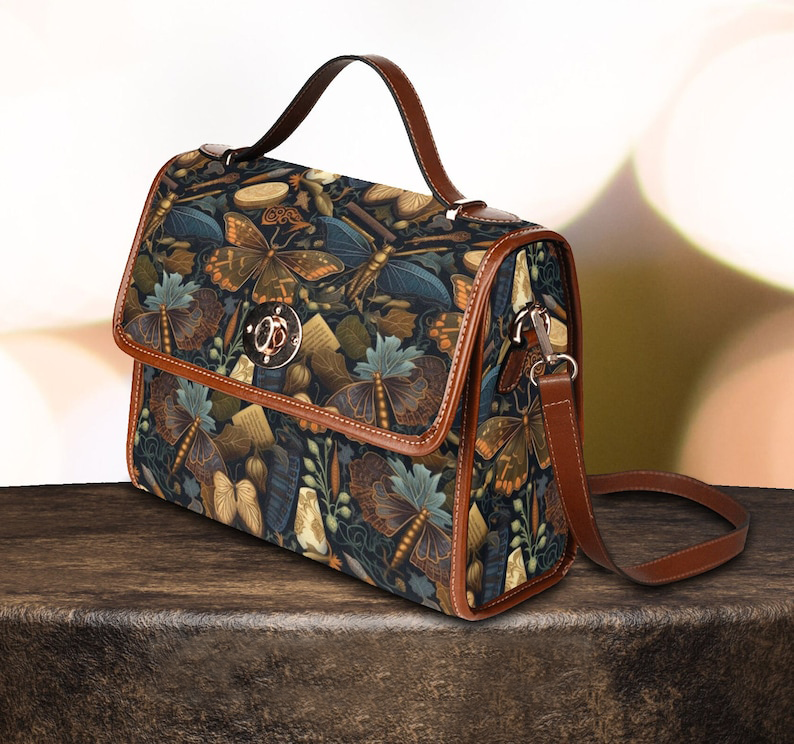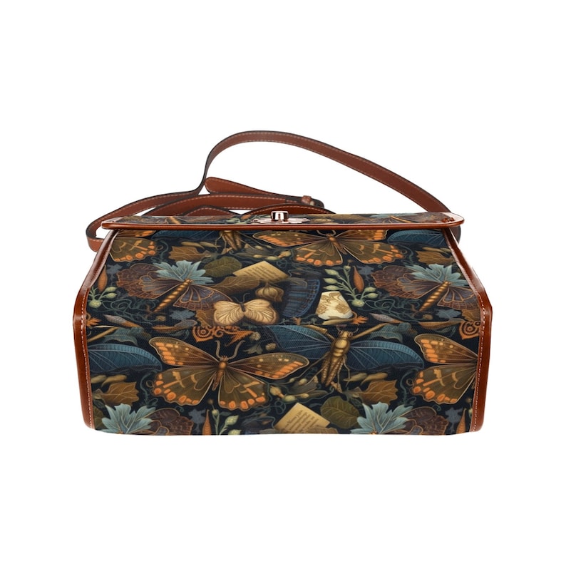 Introducing our Dark Academia Moth Satchel Bag, a sophisticated and mesmerizing accessory that captures the essence of dark academic style with mysterious allure. Adorned with an intricate moth motif on a classic canvas backdrop, this bag exudes the intellectual charm and mystery of academia. Crafted from durable materials, it combines practicality with artistic flair, perfect for carrying essentials with elegant flair. Ideal for those who appreciate the symbolism of the moth and seek accessories that reflect their love of dark academic fashion and mystical motifs.