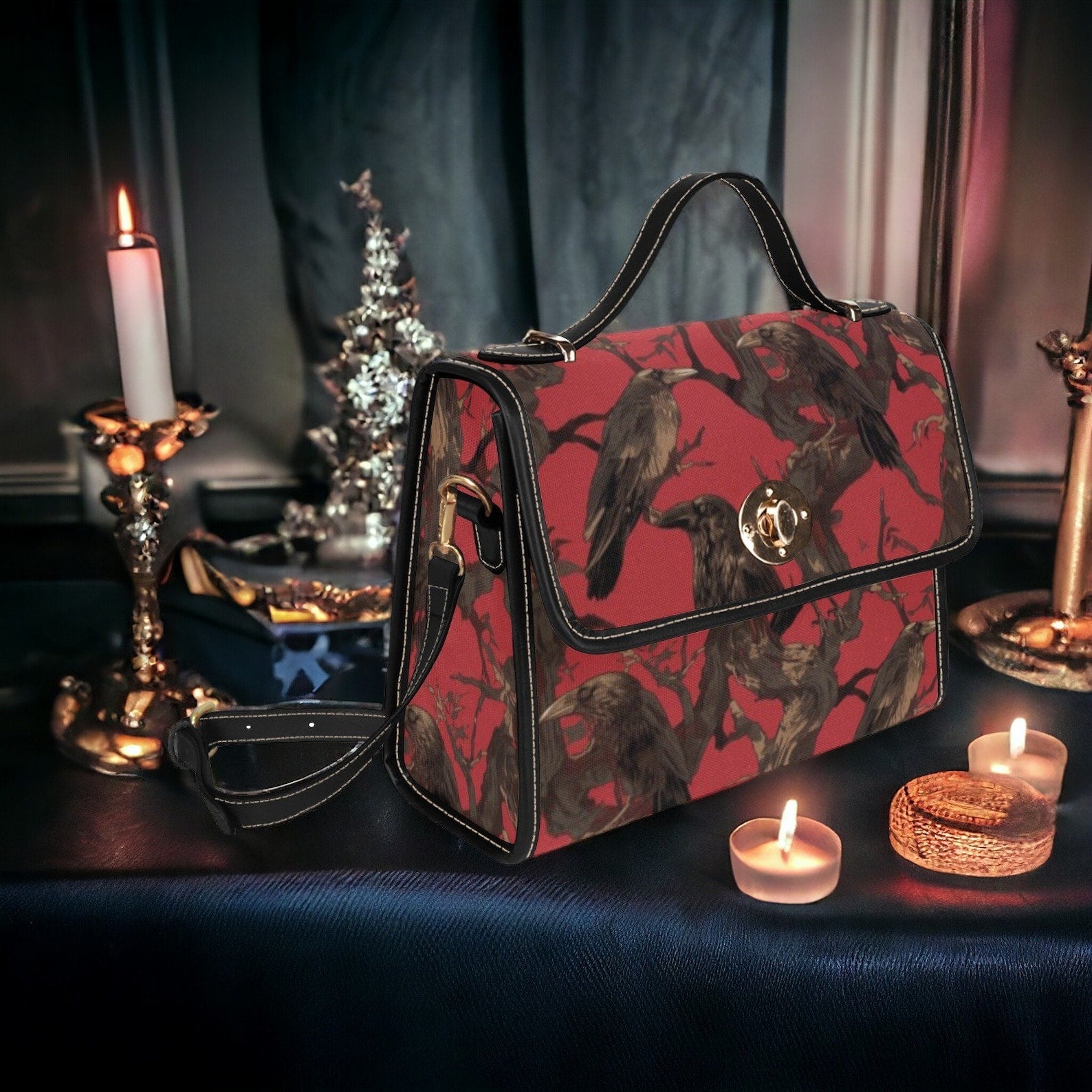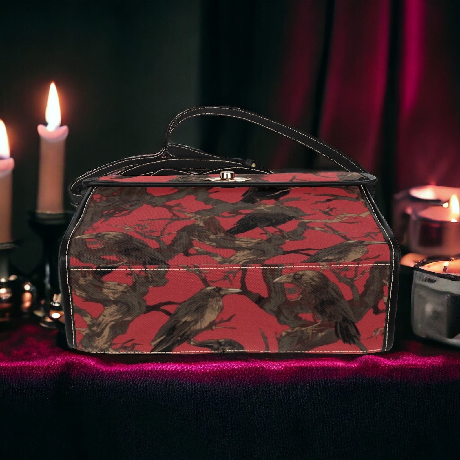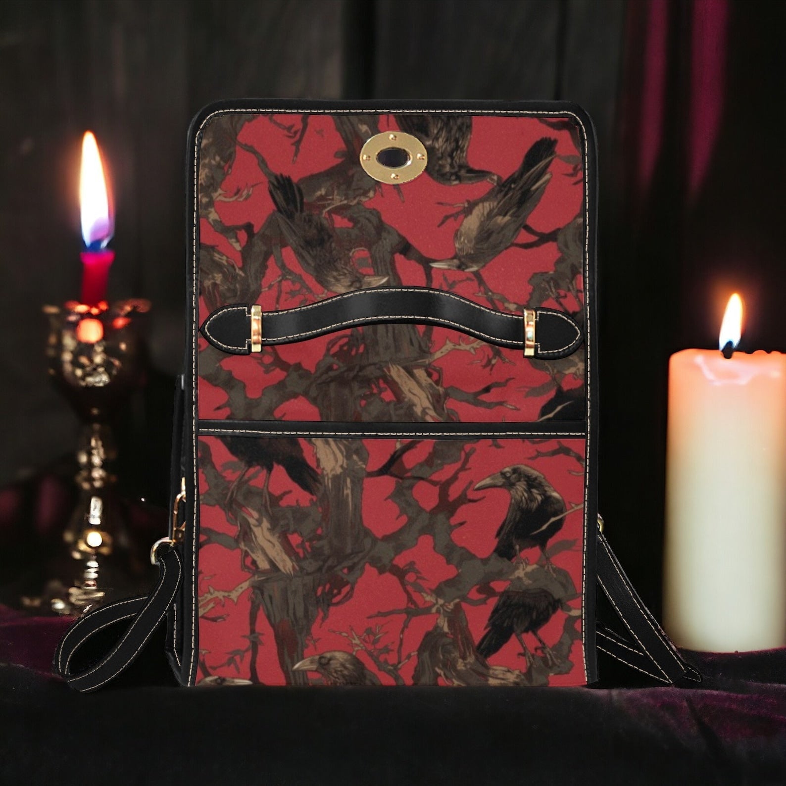 Introducing our Red Raven Forest Witchy Whimsigoth Mini Messenger Bag, where enchantment meets dark whimsy. Adorned with a striking design featuring red crows amid a mysterious forest setting, this mini handbag embodies the essence of witchy aesthetics and Gothic charm. Crafted with attention to detail, it combines practicality with artistic flair, ideal for storing essentials with a touch of mystical elegance. Perfect for those who appreciate the mystical charm of nature and seek accessories that reflect their unique style and passion for the paranormal.