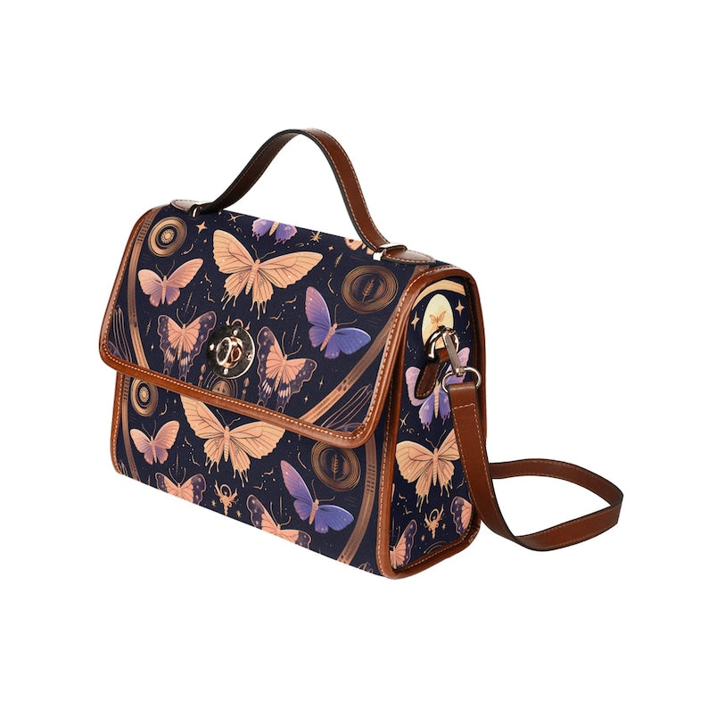 Introducing our colorful Butterfly and Moth Bags, a vibrant and whimsical accessory that celebrates the beauty of nature and its winged creatures. Adorned with colorful butterfly and moth motifs against a soft pink background, this bag embodies the essence of natural charm and whimsy. Crafted from durable materials, it combines practicality with artistic flair, perfect for storing essentials with a touch of colorful elegance. Ideal for those who appreciate the delicate grace of butterflies and moths, looking for accessories that reflect their love of vibrant colors and nature-inspired patterns.