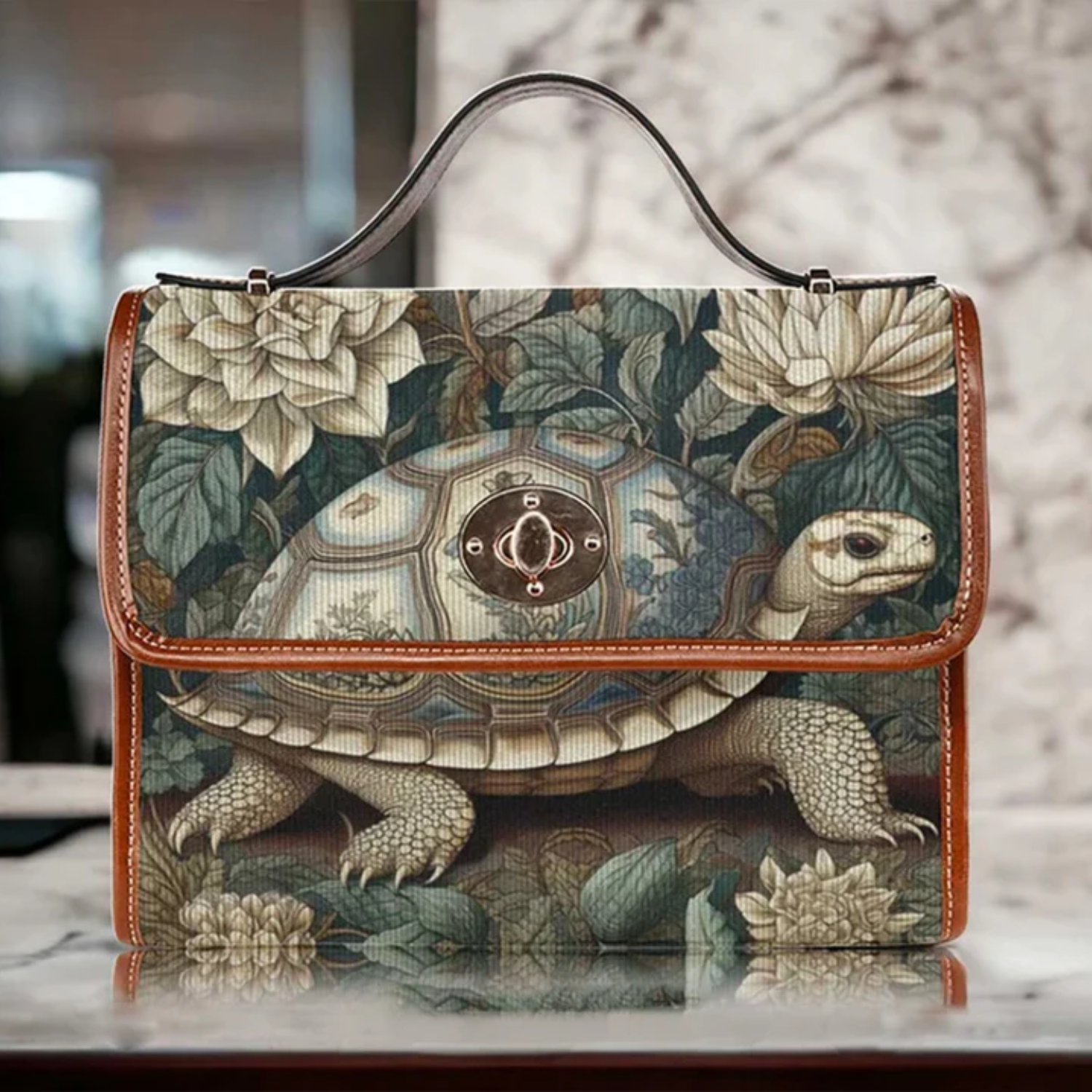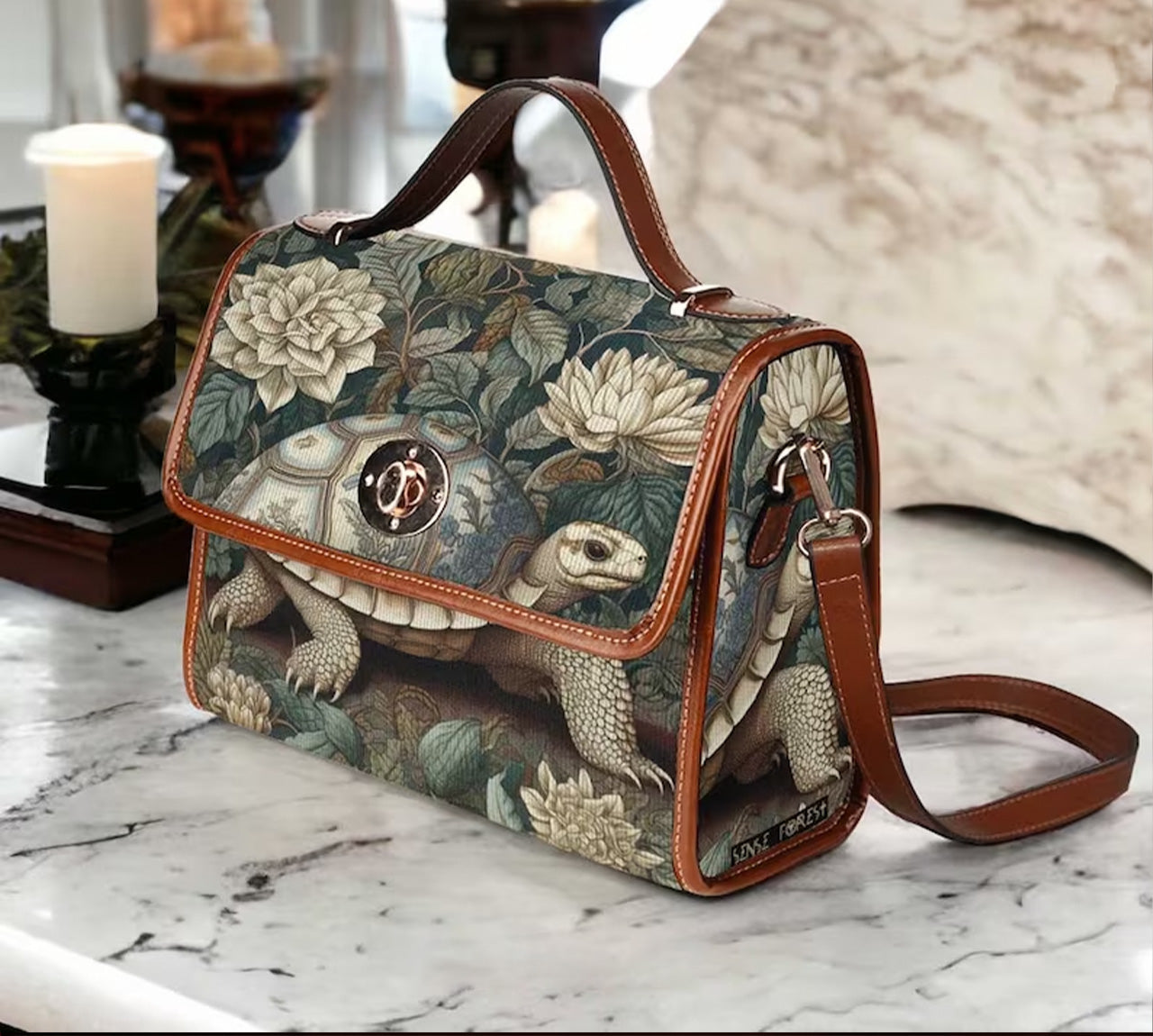 Introducing our white turtle canvas Witch Shoulder Bag, a fusion of mystical charm and nature-inspired design. Featuring a whimsical white box turtle motif against an intricate pattern, this satchel captures the essence of a witchy aesthetic and natural charm. Crafted from durable canvas, it combines practicality with unique style, perfect for storing essentials with a touch of charm. Ideal for those who love the paranormal and seek accessories that reflect their personality and passion for the world of magic.