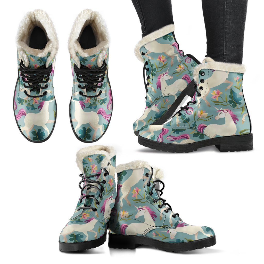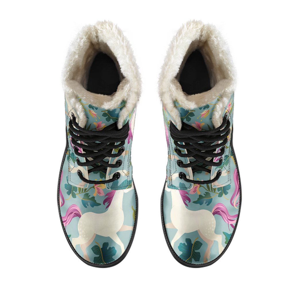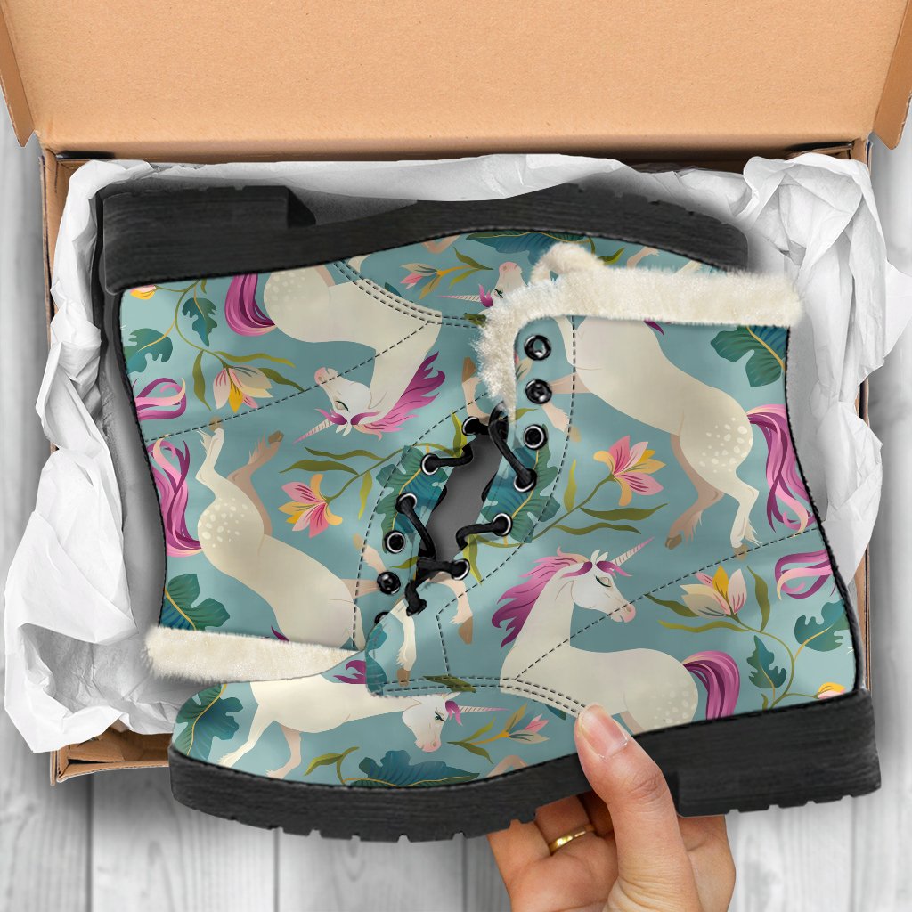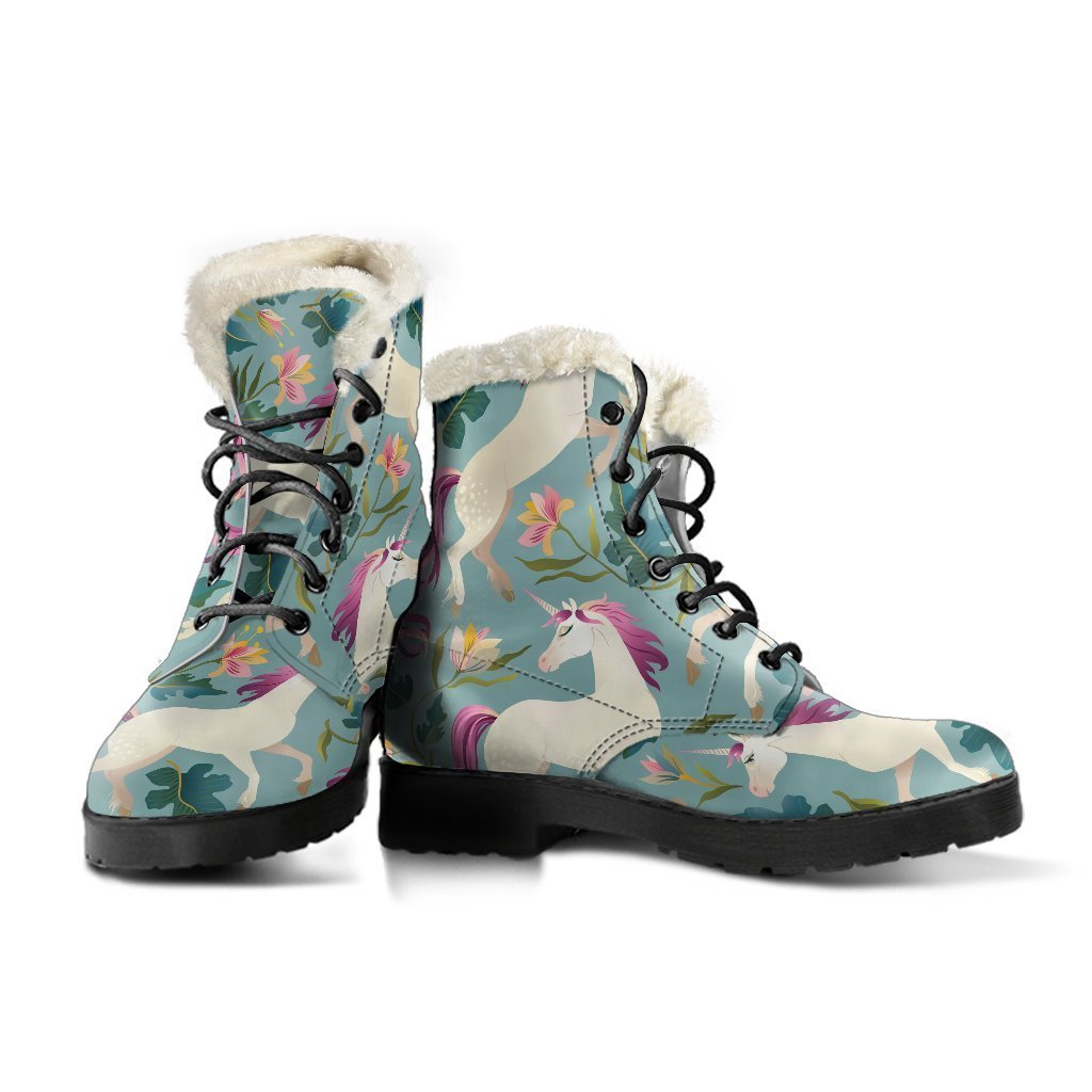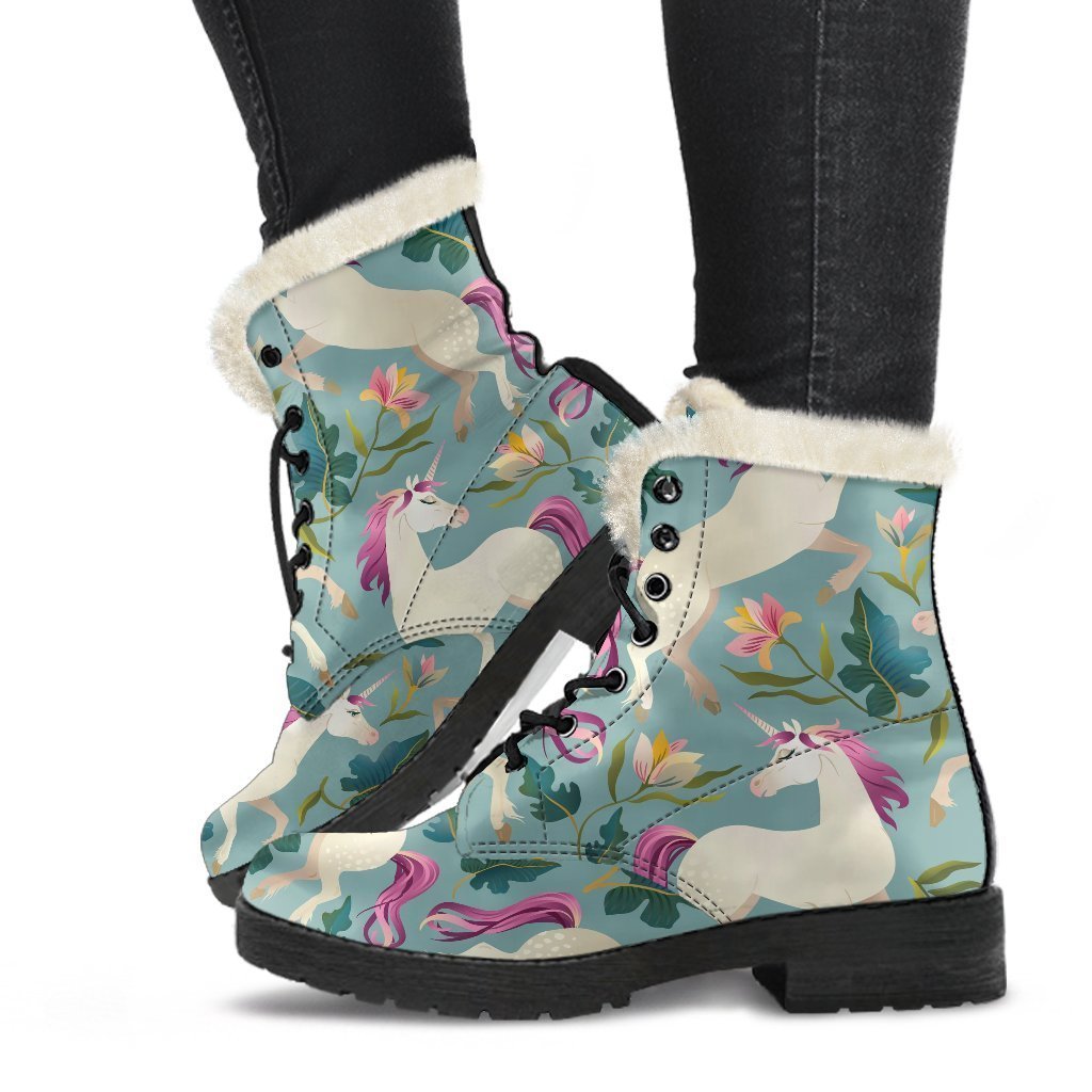 These Hippies Faux Fur Leather Boots are the perfect addition to any hippie's wardrobe. Featuring a unique floral unicorn pattern print, these boots are sure to make a statement wherever you go. The faux fur trim adds a touch of bohemian style, while the leather construction ensures durability and long-lasting comfort. These boots are perfect for festivals, concerts, or just adding a touch of hippie flair to your everyday outfit. Embrace your inner hippie spirit with these one-of-a-kind boots that are as unique and individual as you are.