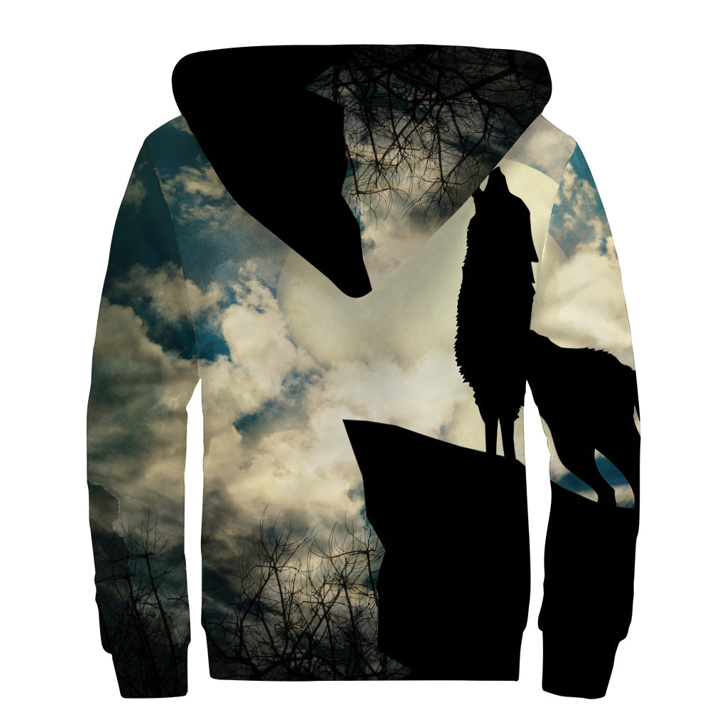 Embrace your free-spirited style with this Wolf Howling at the Full Moon Print Sherpa Lined Zip Up Hoodie. This cozy and warm hoodie features a stunning wolf howling at the full moon design that is perfect for all the nature-loving hippies out there. The sherpa lining adds an extra layer of comfort and warmth, making it perfect for chilly nights around the campfire or simply lounging around at home. With a zip up front and hood, this hoodie is both stylish and practical. Show off your hippie vibes and love for nature with this unique and eye-catching hoodie.