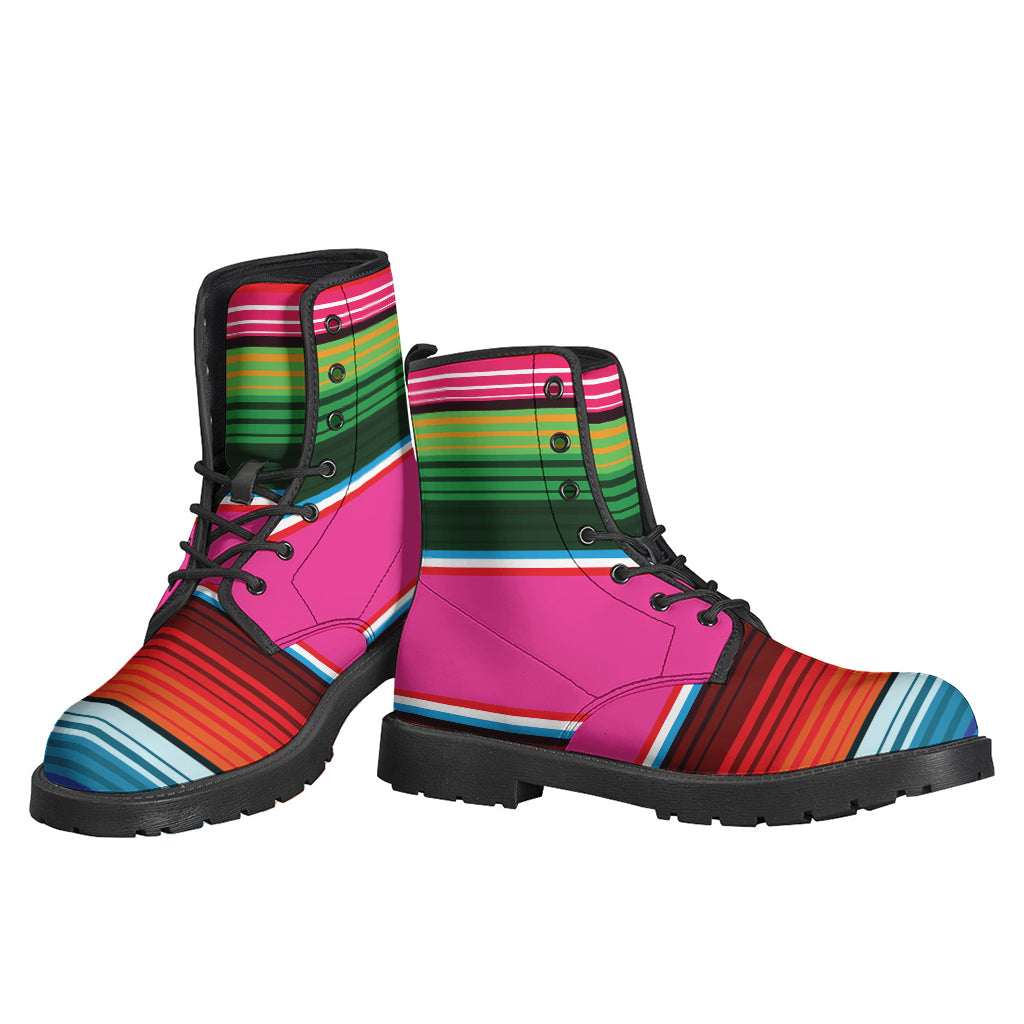 Embrace your inner free spirit with these Colorful Mexican Blanket Stripe Print Leather Boots from Gear Frost. These lightweight boots are perfect for hippies and bohemian style lovers, featuring a vibrant and eye-catching Mexican blanket stripe print on the leather exterior. The unique pattern adds a pop of color to any outfit, making these boots a standout piece in your wardrobe. The boots are designed with comfort in mind, making them ideal for all-day wear at music festivals, outdoor adventures, or everyday casual outings. Step out in style and make a statement with these hippie-inspired leather boots that are sure to turn heads wherever you go.