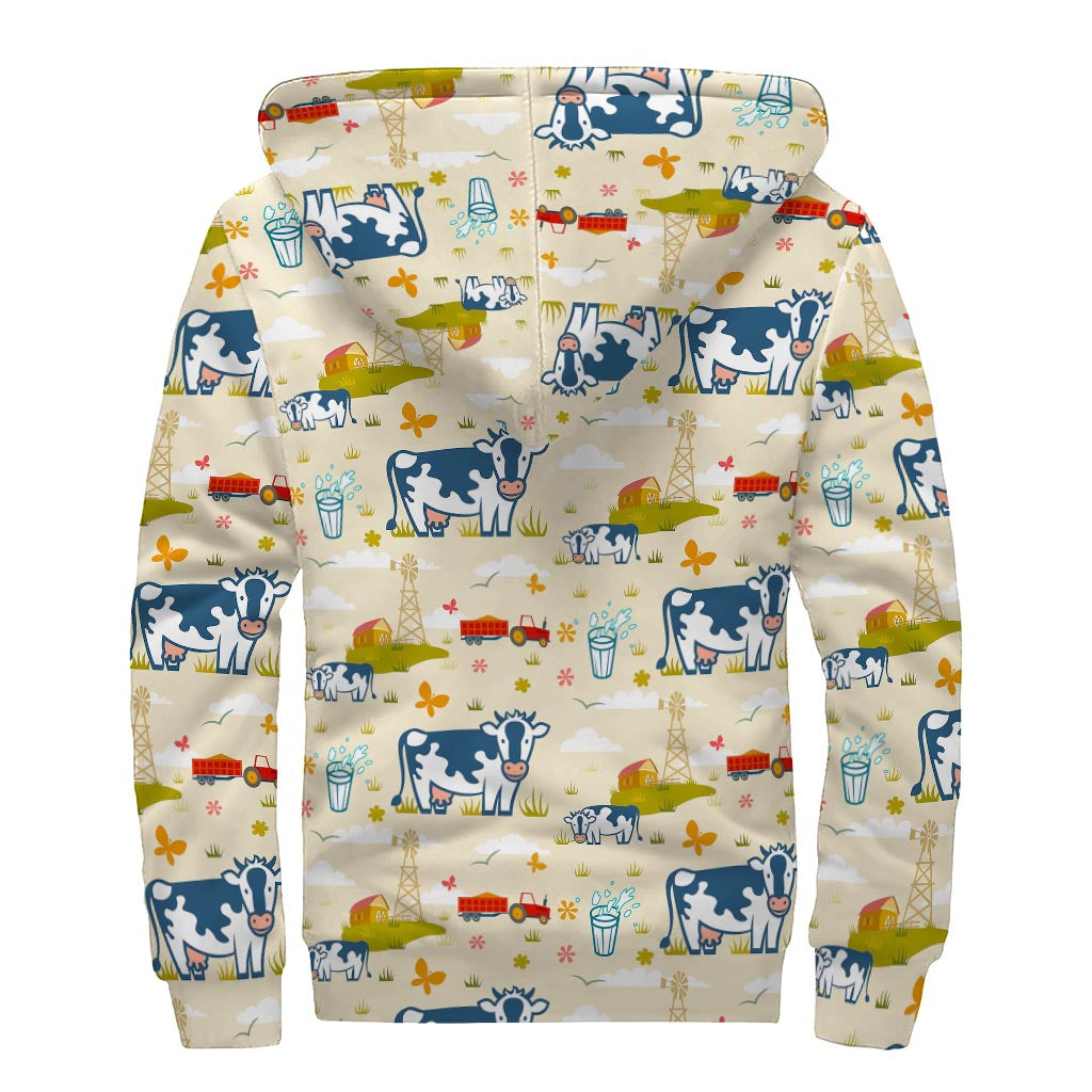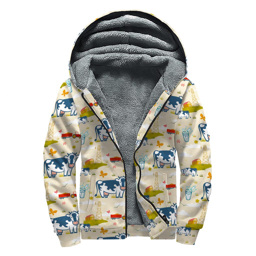 Get ready to embrace your inner hippie with this Sherpa Lined Zip Up Hoodie featuring a whimsical cartoon dairy cow farm pattern print. The cozy sherpa lining will keep you warm and comfortable, while the zip up design allows for easy layering. Whether you're headed to a music festival or just want to add a fun pop of style to your everyday look, this hippie-inspired hoodie is the perfect choice. Let your free spirit shine with this unique and eye-catching piece that is sure to turn heads wherever you go.