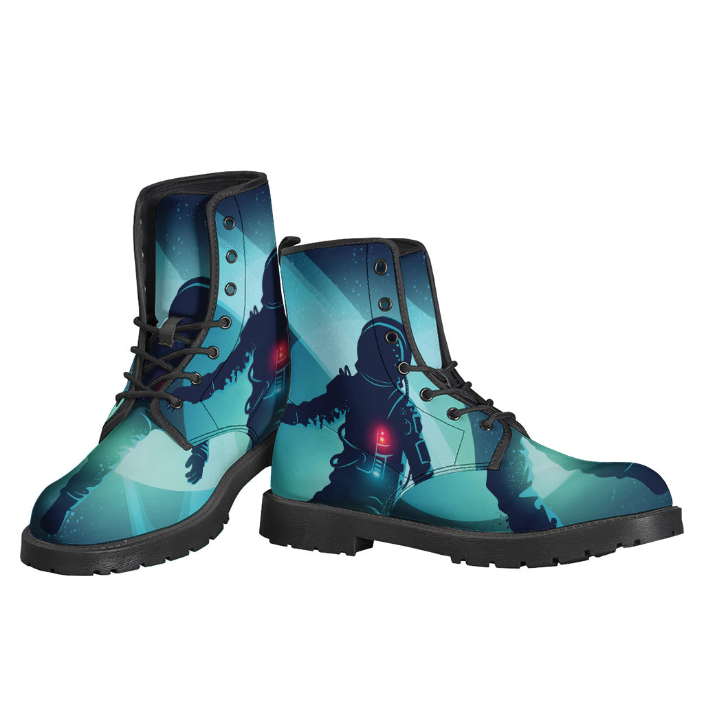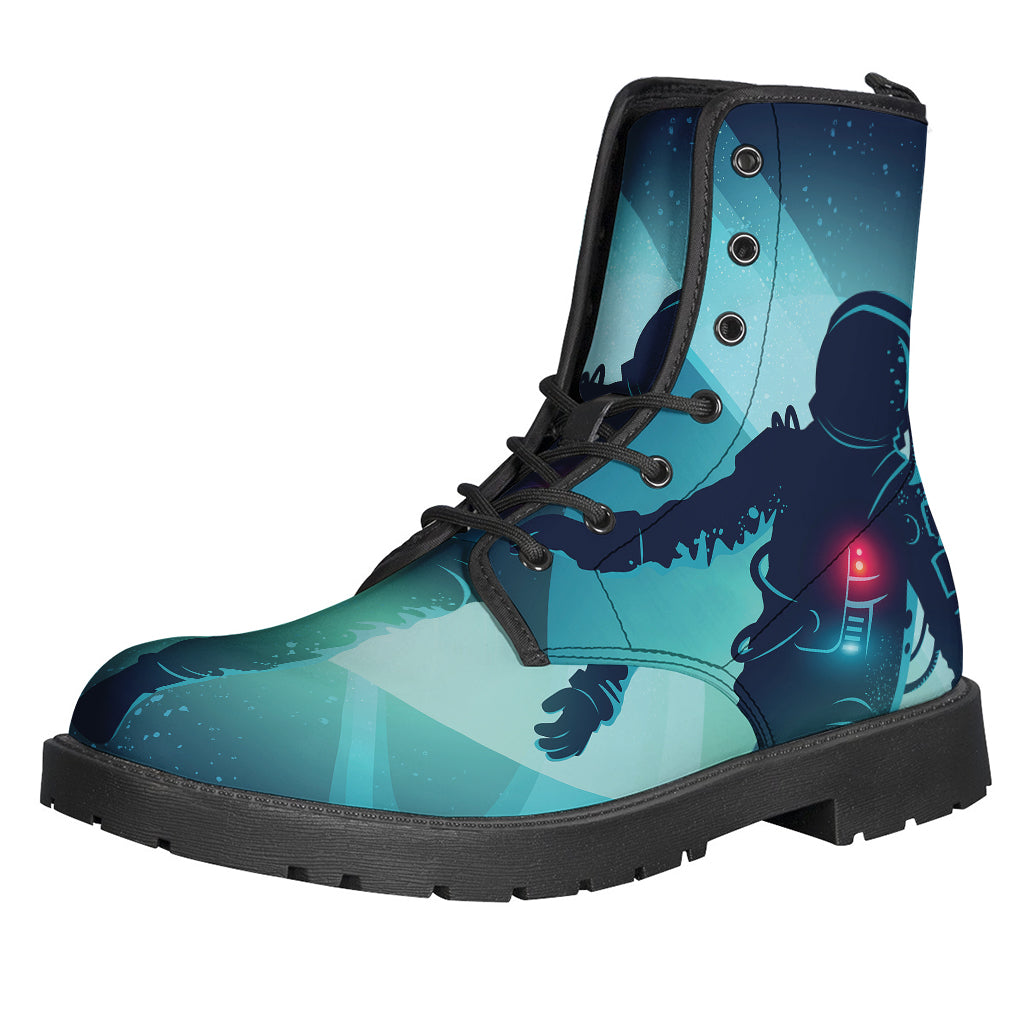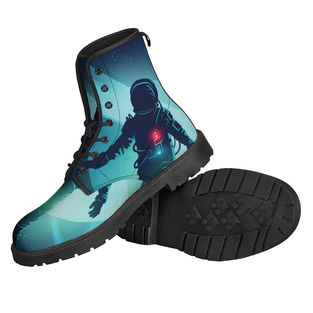 These Hippie Leather Lightweight Boots are perfect for anyone looking to add a whimsical touch to their wardrobe. Featuring a unique Astronaut Floating Through Space print, these boots are sure to make a statement wherever you go. The lightweight design and comfortable fit make them perfect for all-day wear, while the durable leather construction ensures long-lasting quality. Whether you're a fan of space exploration or simply want to embrace your inner hippie, these boots are a must-have addition to your collection.
