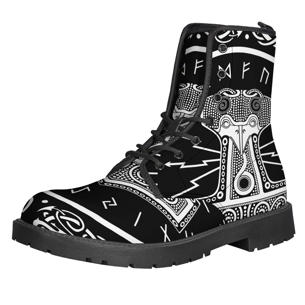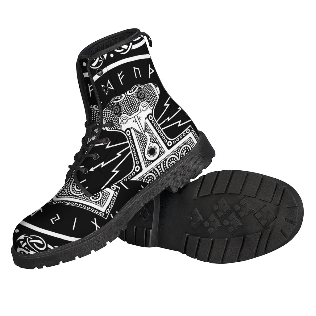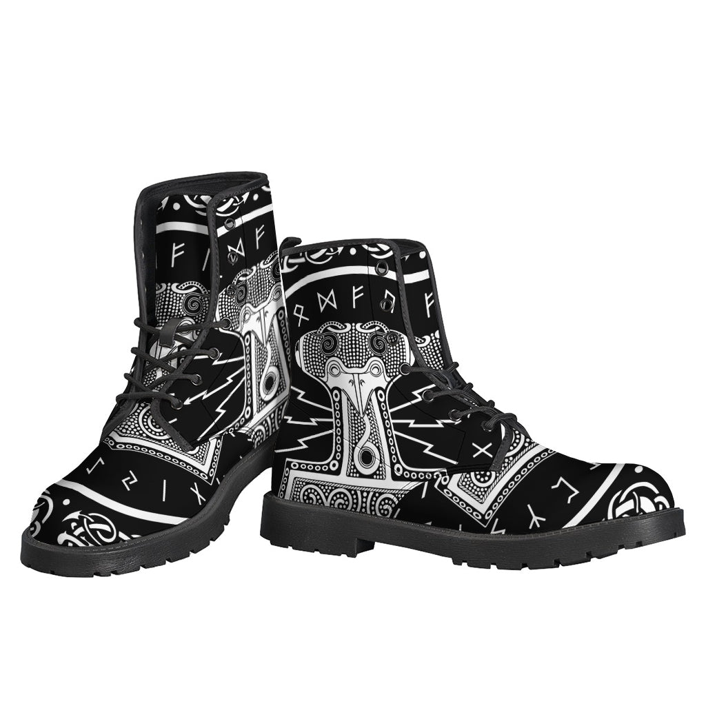 Embrace the free-spirited and adventurous style of the hippie era with these striking Leather Lightweight Boots featuring a unique Mjolnir Norse Mythology print. These boots are perfect for those who want to make a bold fashion statement while also staying comfortable on their feet. The lightweight design makes them perfect for all-day wear, whether you're exploring the great outdoors or dancing the night away at your favorite music festival. Step out in style and channel your inner hippie with these one-of-a-kind leather boots.