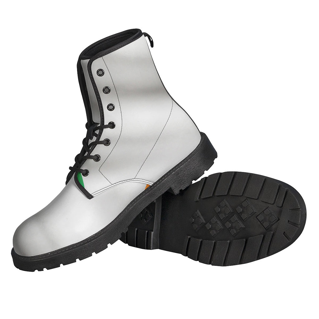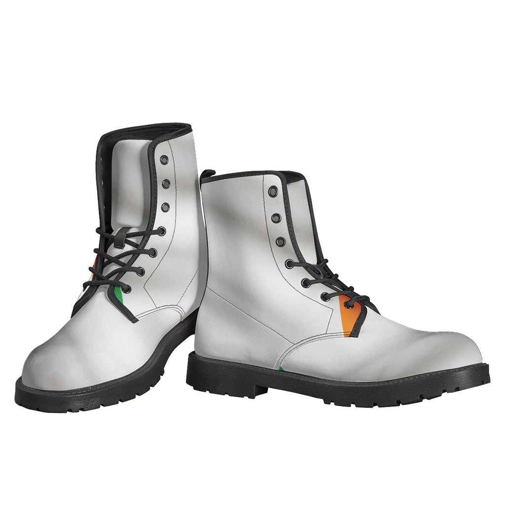 Embrace your inner flower child with these Hippies Leather Lightweight Boots featuring a vibrant Irish flag print. Crafted from high-quality leather, these boots are not only stylish but also durable and comfortable for all-day wear. The lightweight design makes them perfect for music festivals, outdoor adventures, or just adding a touch of bohemian flair to your everyday look. Channel your free-spirited attitude and make a statement with these unique and eye-catching boots that are sure to turn heads wherever you go.