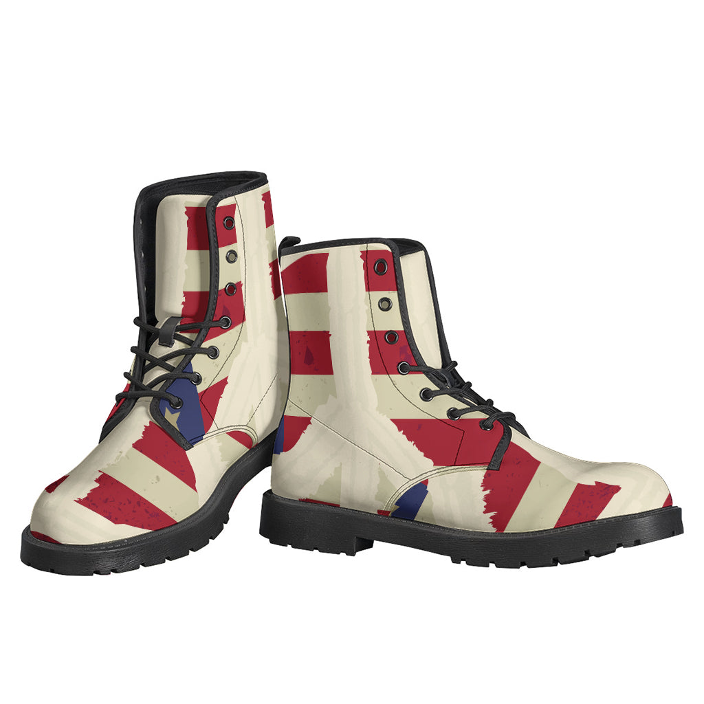 These American Peace Flag Print Leather Boots are the perfect addition to any hippie's wardrobe. Made from high-quality leather, these boots are both stylish and lightweight, making them a comfortable option for all-day wear. The peace flag print adds a touch of bohemian flair, while the sturdy construction ensures durability and longevity. Whether you're heading to a music festival or simply want to add a touch of hippie style to your everyday look, these boots are a must-have accessory. Step out in style and spread good vibes with these chic and unique leather boots.
