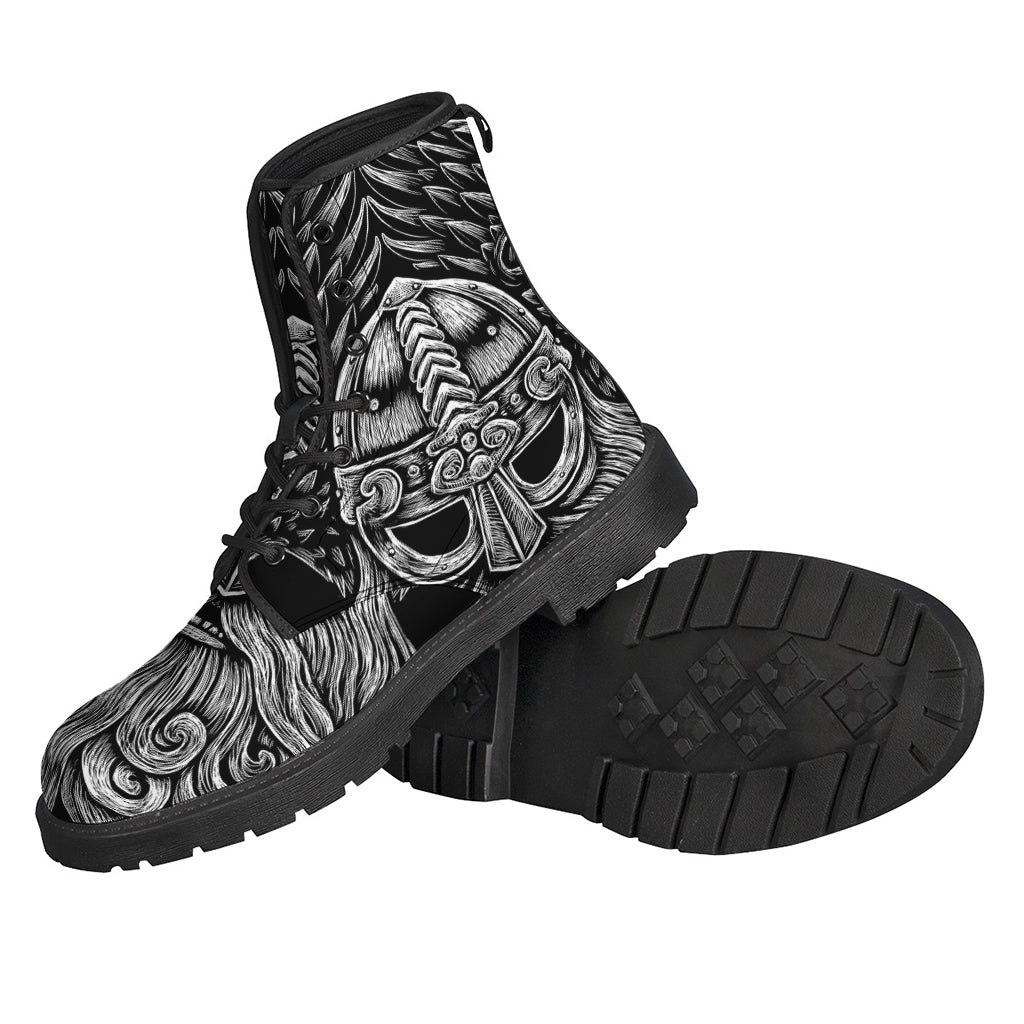These Leather Lightweight Boots are perfect for hippies who want to embrace their free-spirited style with a touch of mythology. The boots feature a unique print of the Norse god Odin with his two ravens, Huginn and Muninn, symbolizing wisdom and thought. Made from high-quality leather, these boots are durable and comfortable for all-day wear. The lightweight design makes them ideal for walking and exploring, while the intricate print adds a touch of bohemian flair to any outfit. Whether you're heading to a music festival or just want to add some hippie vibes to your everyday look, these boots are sure to make a statement.