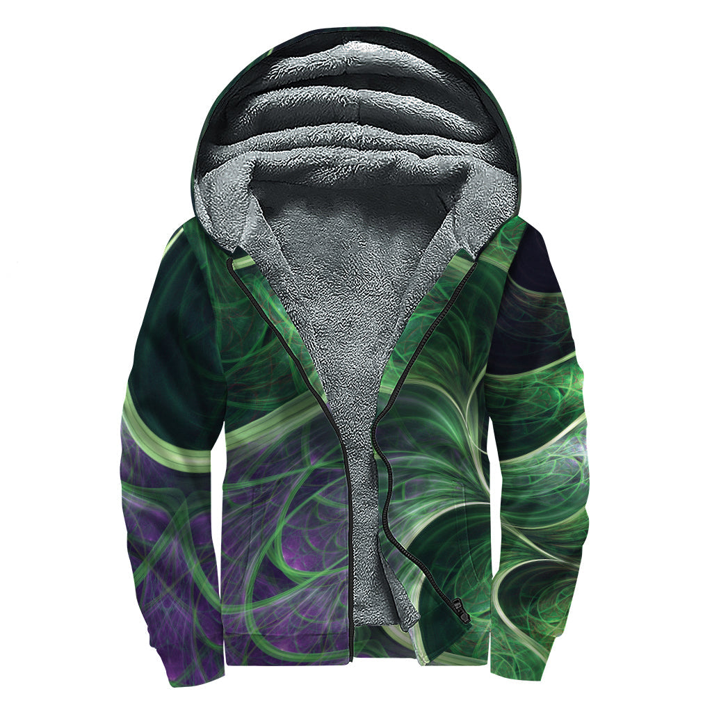 This Sherpa Lined Zip Up Hoodie is the perfect addition to any hippie's wardrobe. The vibrant green fractal print gives off a laid-back, retro vibe that is perfect for any free spirit. The soft Sherpa lining ensures that you stay cozy and warm, while the convenient zip-up design allows for easy layering. Whether you're headed to a music festival, out for a hike in nature, or just hanging out with friends, this hoodie is sure to keep you looking stylish and feeling comfortable. Embrace your inner hippie with this unique and eye-catching piece!