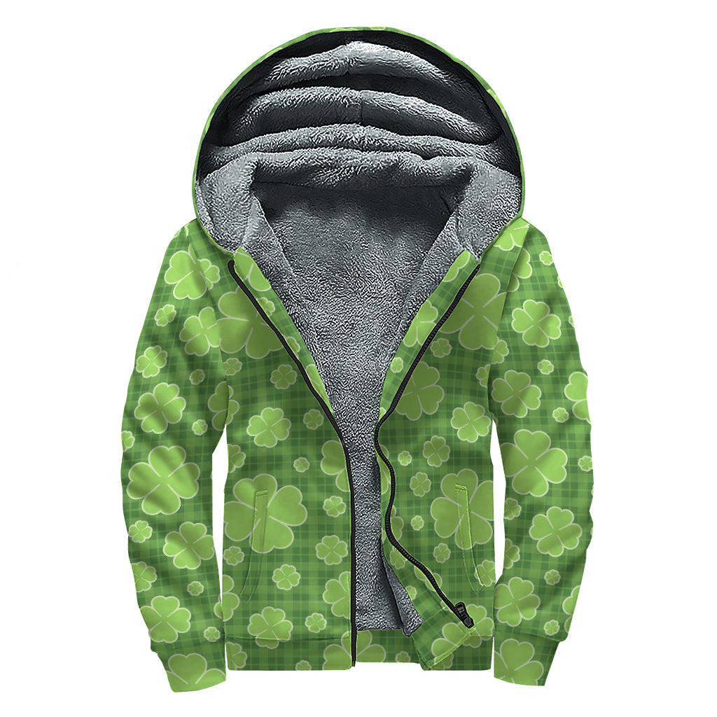 This Sherpa Lined Zip Up Hoodie is the perfect addition to any hippie's wardrobe. Featuring a unique green shamrock plaid pattern print, this hoodie exudes a fun and laid-back vibe. The super soft Sherpa lining adds extra warmth and coziness, making it ideal for chilly days and nights. The zip-up design makes it easy to layer over your favorite tie-dye t-shirts and bell-bottom jeans. Whether you're headed to a music festival or just hanging out with friends, this hoodie will keep you looking stylish and feeling comfortable.
