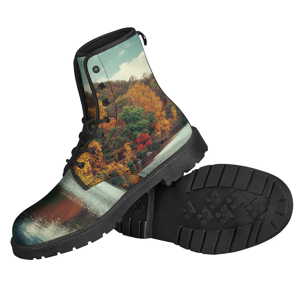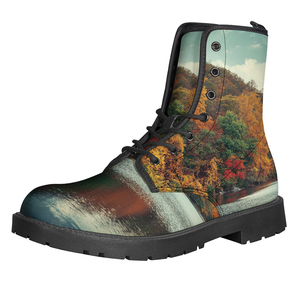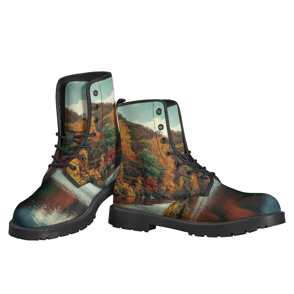 The Hippies Leather Lightweight Boots are the perfect addition to any bohemian-inspired wardrobe. Crafted from high-quality leather, these boots feature an autumn lake print design that adds a touch of whimsy and nature-inspired beauty to your ensemble. The boots feature a comfortable and breathable lightweight design that makes them perfect for all-day wear. The slip-resistant sole ensures a stable and secure footing, while the lace-up design allows for a customized and snug fit. These boots are a versatile option that can be worn with a variety of outfits, from maxi dresses to jeans and everything in between. Their unique design, comfort, and durability make them an ideal choice for any free-spirited individual who appreciates fashion, comfort, and quality.
