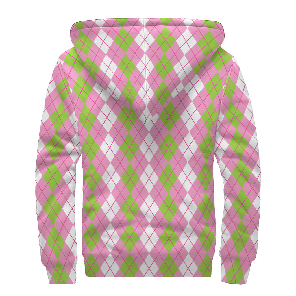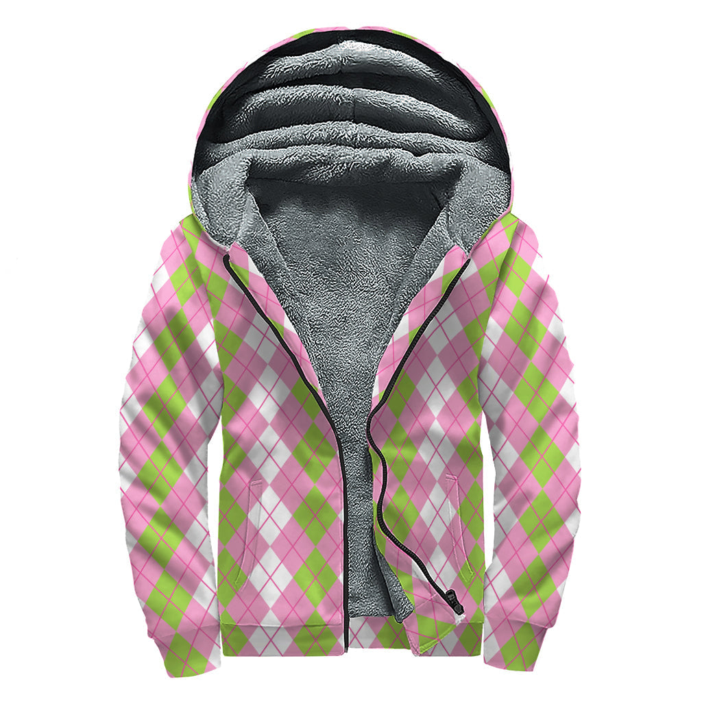 This hippie-style Sherpa Lined Zip Up Hoodie features a unique white, pink, and green argyle print that perfectly captures the free-spirited and colorful essence of the hippie movement. The cozy Sherpa lining provides warmth and comfort, making it perfect for chilly days and nights. The zip-up design allows for easy on and off, while the hood adds an extra layer of coziness. Whether you're headed to a music festival or just hanging out with friends, this hoodie is sure to make a statement and keep you feeling stylish and snug.