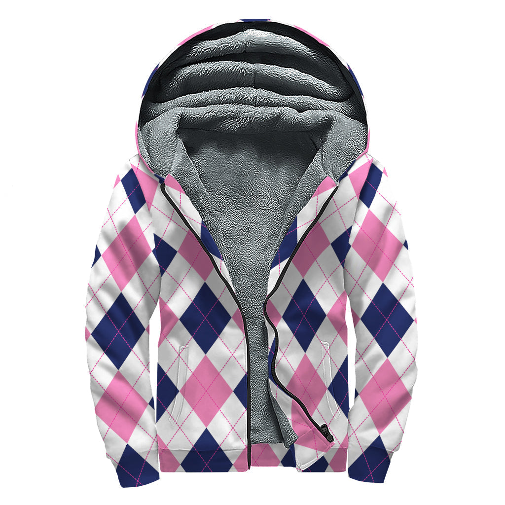 Groovy Argyle Sherpa-Lined Zip Up Hoodie for Hippie Chic Style - 1
