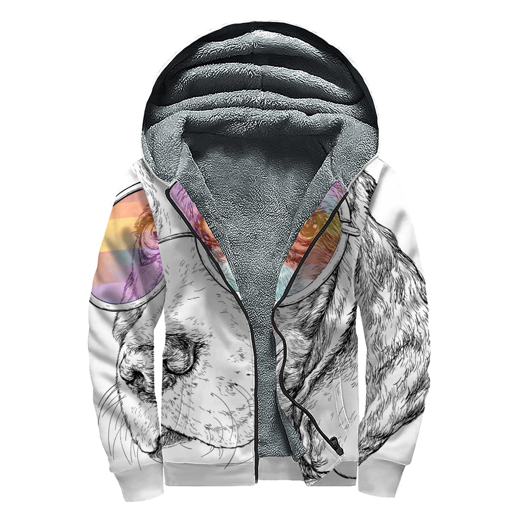 This Sherpa Lined Zip Up Hoodie is perfect for those who embrace a laid-back, bohemian style inspired by the hippie movement. The hoodie features a unique print of a hipster beagle wearing glasses, adding a fun and quirky touch to your outfit. The Sherpa lining provides extra warmth and coziness, making it ideal for chilly days and nights. With its relaxed fit and zip-up design, this hoodie is both comfortable and stylish, perfect for showcasing your free-spirited attitude. Add a touch of retro flair to your wardrobe with this must-have piece for any hippie fashion enthusiast.