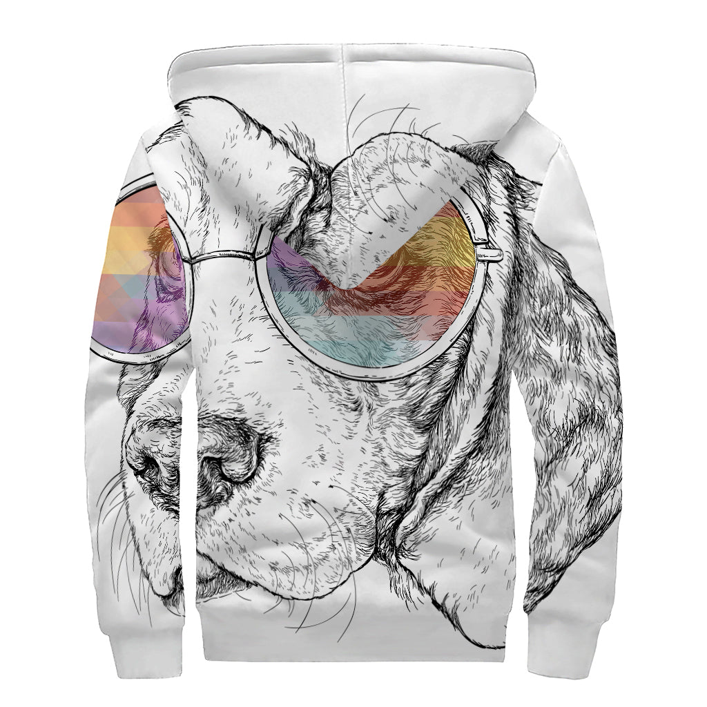 Groovy Beagle with Glasses Sherpa Lined Zip Up Hoodie for Hippie Fashion