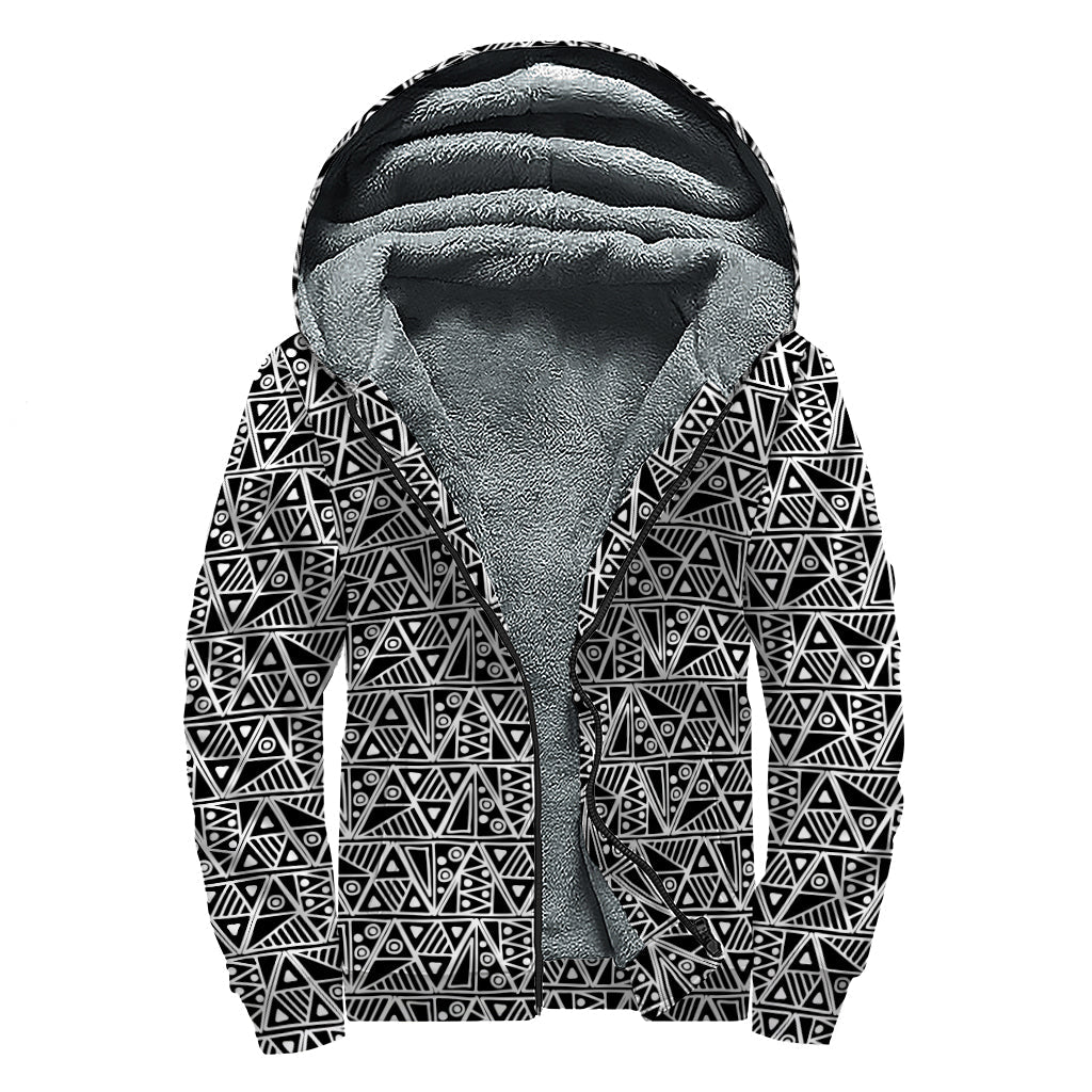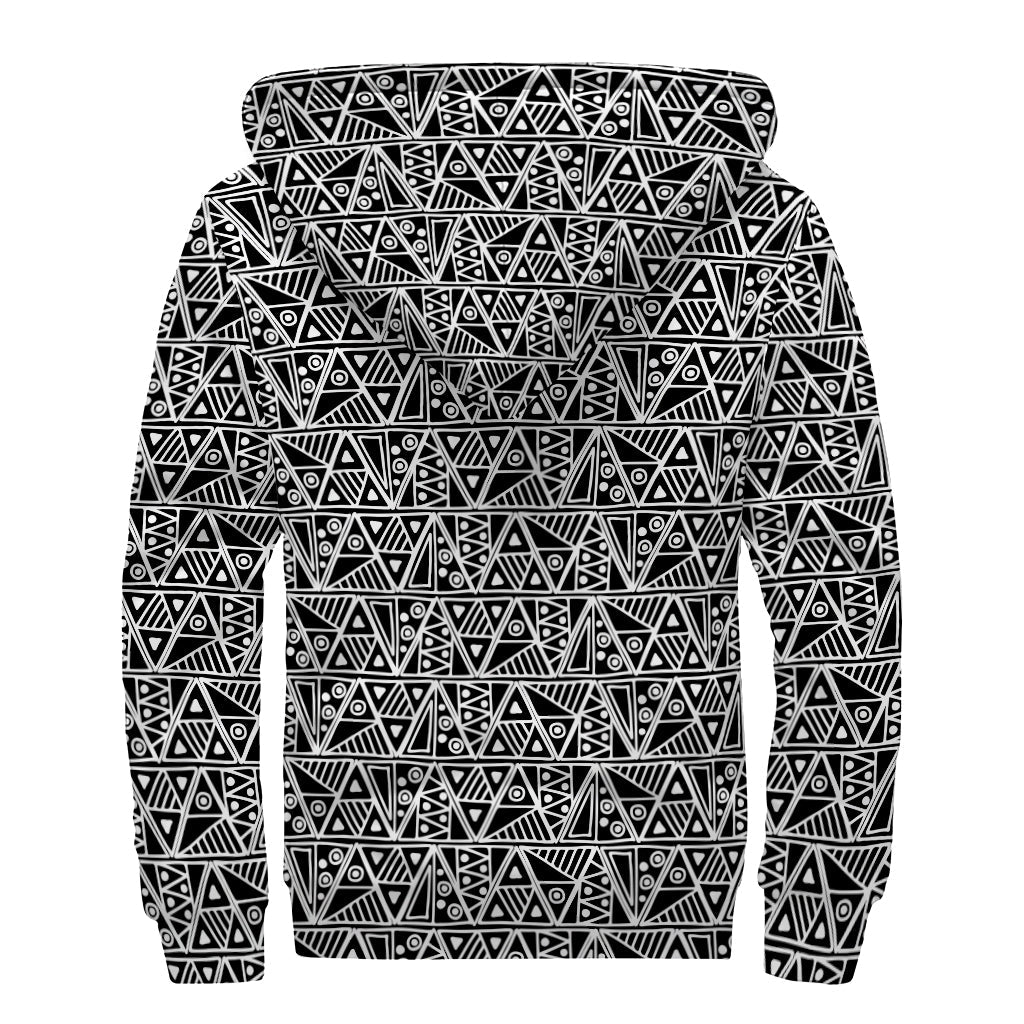 Groovy Black and White Ethnic Print Sherpa Lined Zip Up Hoodie for Free-Spirited Hippies