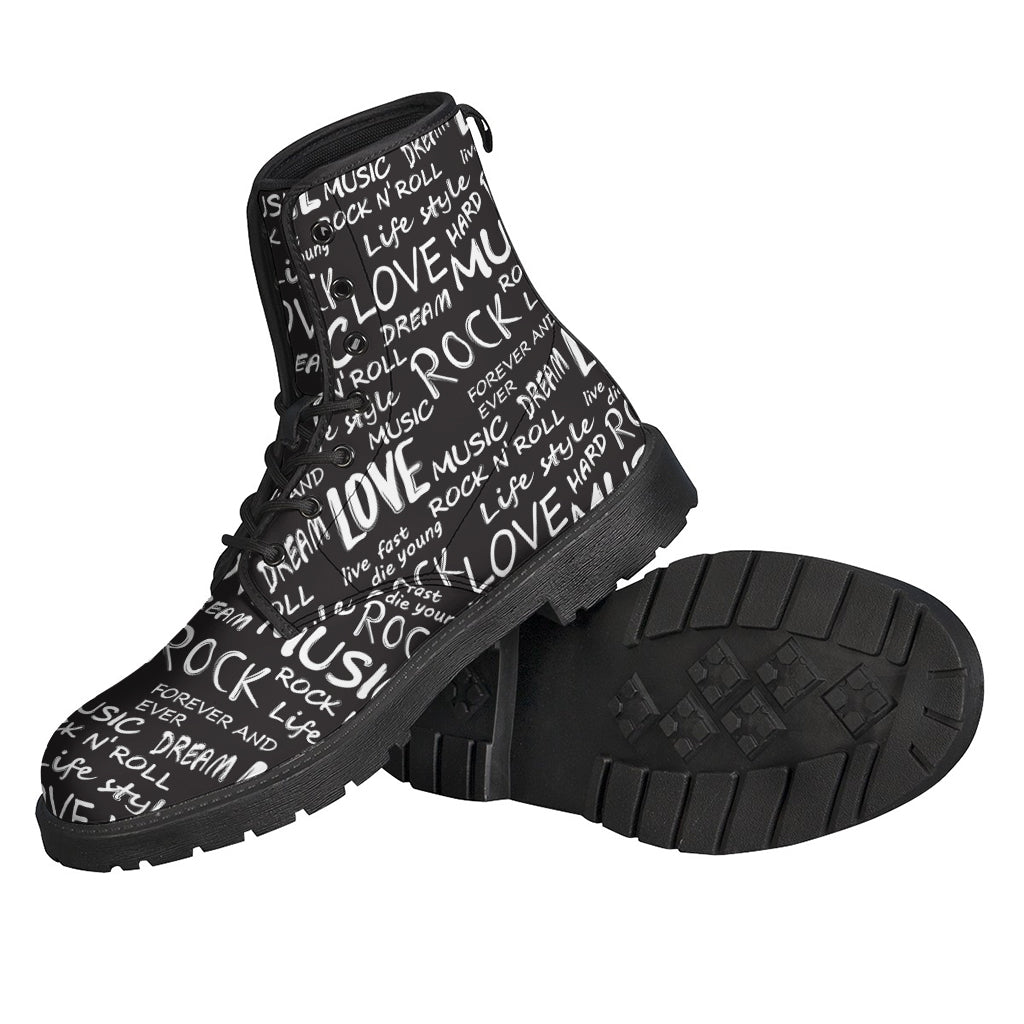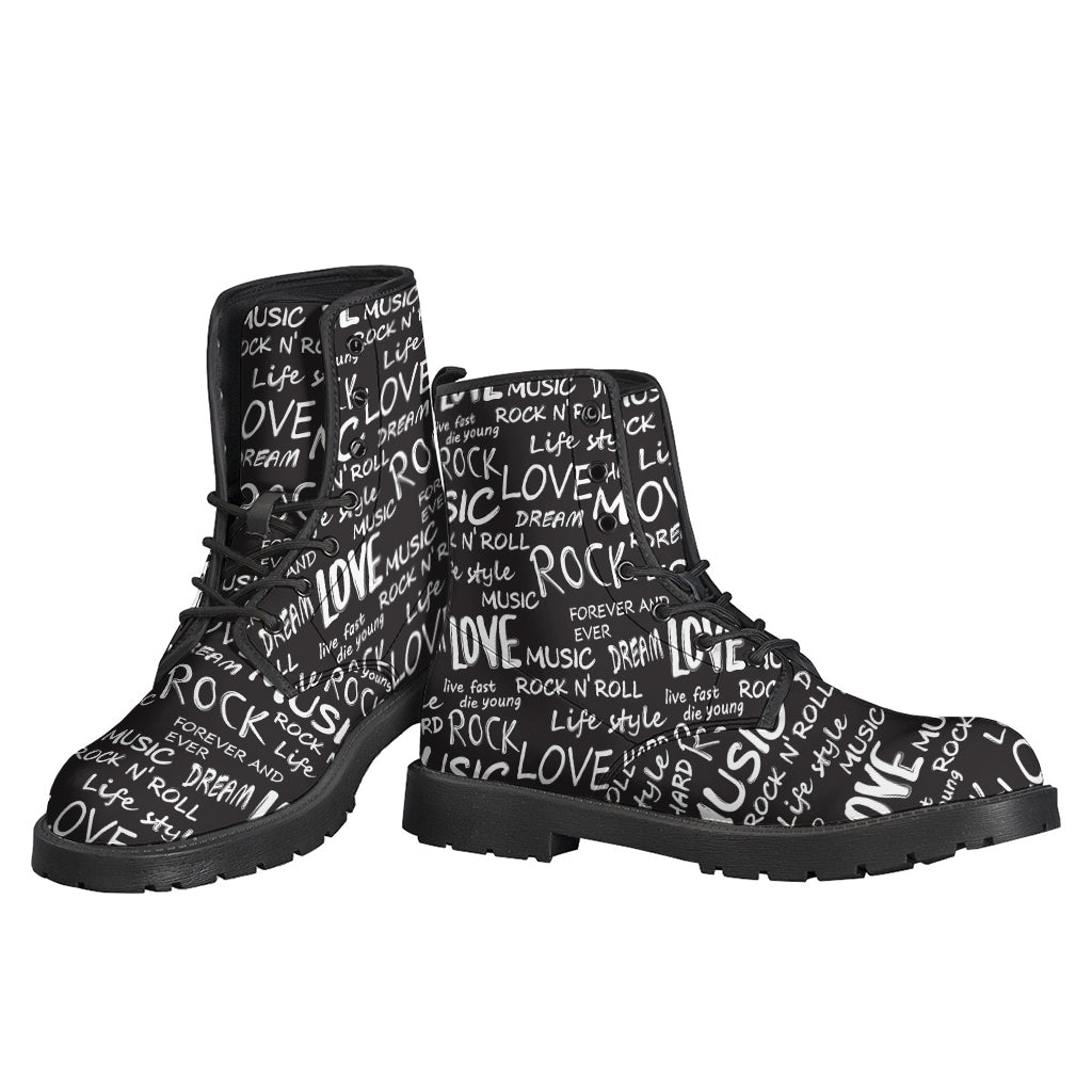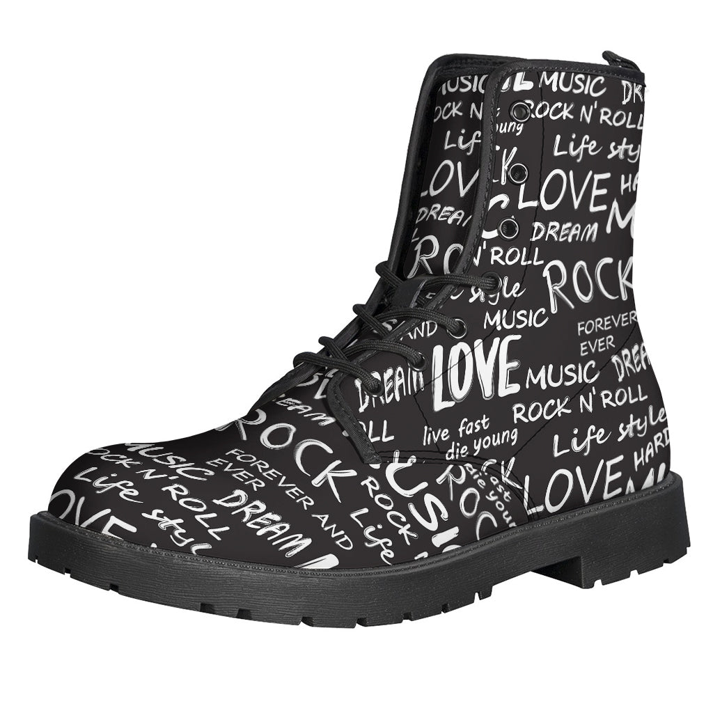Get ready to rock out in style with these Black and White Rock and Roll Print Leather Boots! These lightweight boots are perfect for any hippie's wardrobe, combining edgy rock and roll vibes with the comfort of a classic leather boot. The black and white print adds a touch of retro flair, while the durable construction ensures you can dance the night away at your next music festival. Whether you're hitting the streets or the stage, these boots are sure to elevate your bohemian style. Gear up and get ready to turn heads with these statement-making boots!