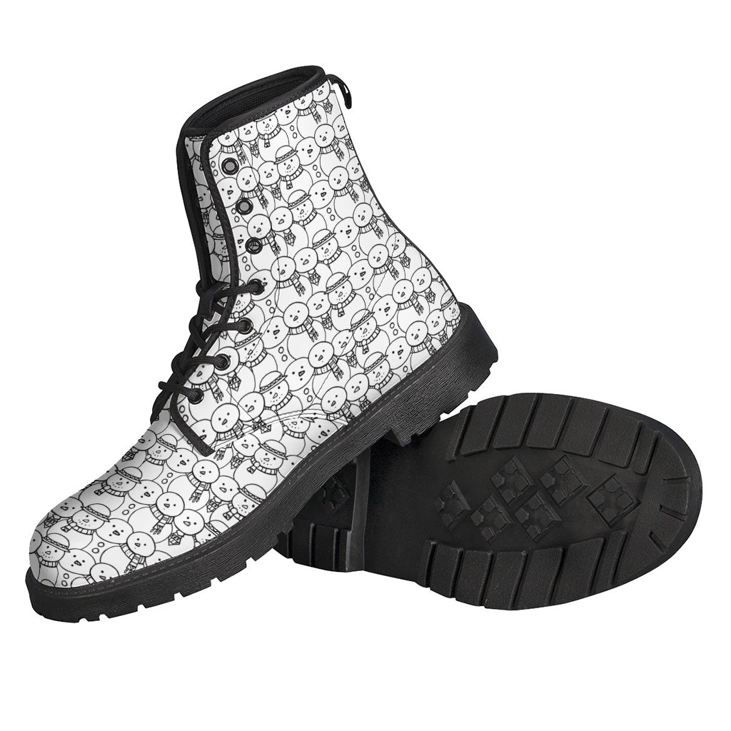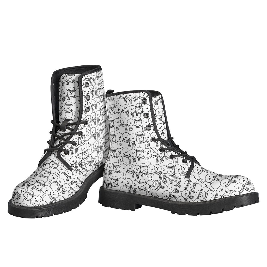 Embrace your inner hippie with these stylish Leather Lightweight Boots featuring a unique black and white snowman pattern print. These boots offer a comfortable and lightweight design, perfect for those who love to wander and explore. The high-quality leather material ensures durability and long-lasting wear, while the eye-catching pattern adds a fun and eccentric touch to any outfit. Whether you're heading to a music festival, a hike in nature, or just want to add a statement piece to your wardrobe, these hippie-inspired boots are a must-have for any free spirit.