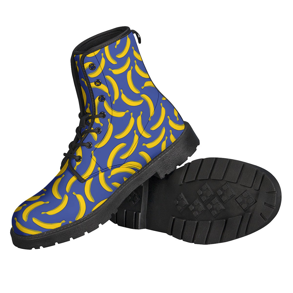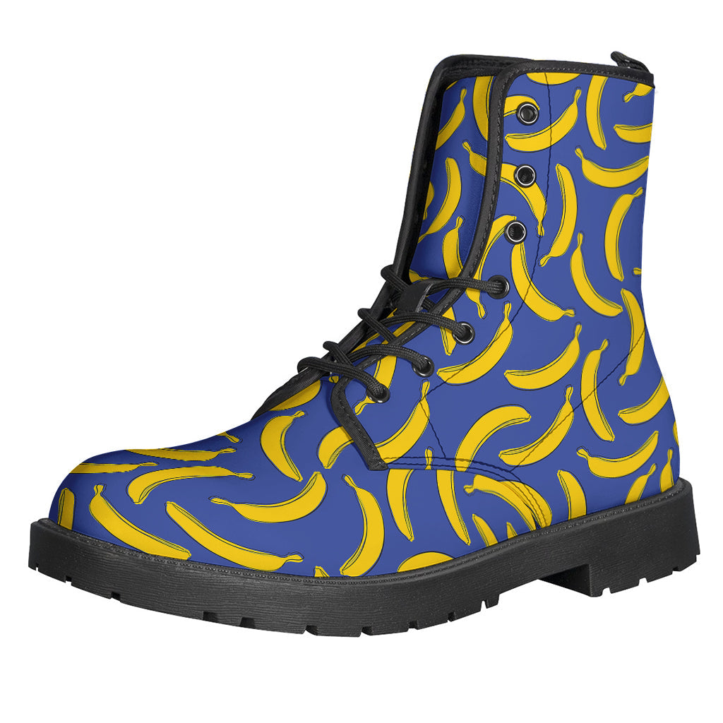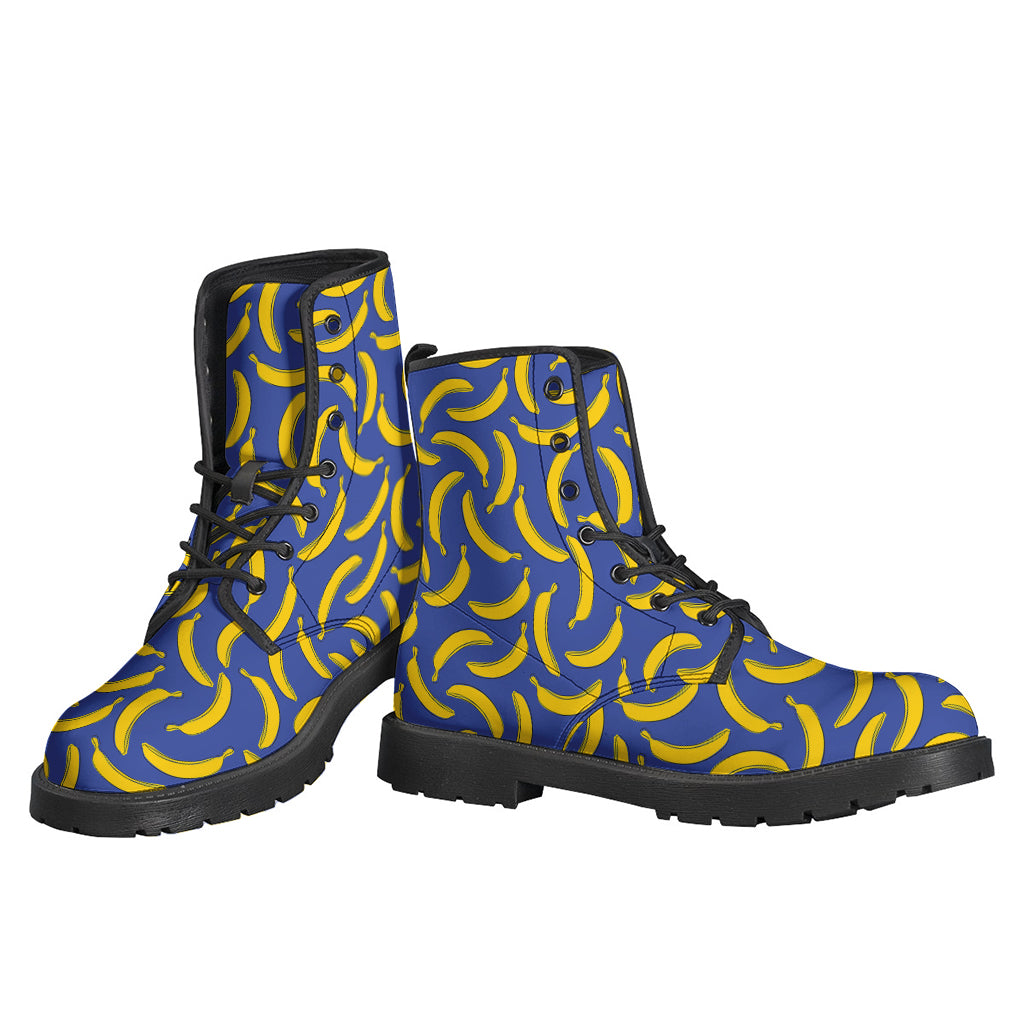 Groovy! Blue and Yellow Banana Pattern Print Leather Boots for Stylish Hippies