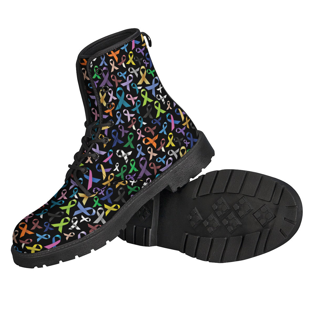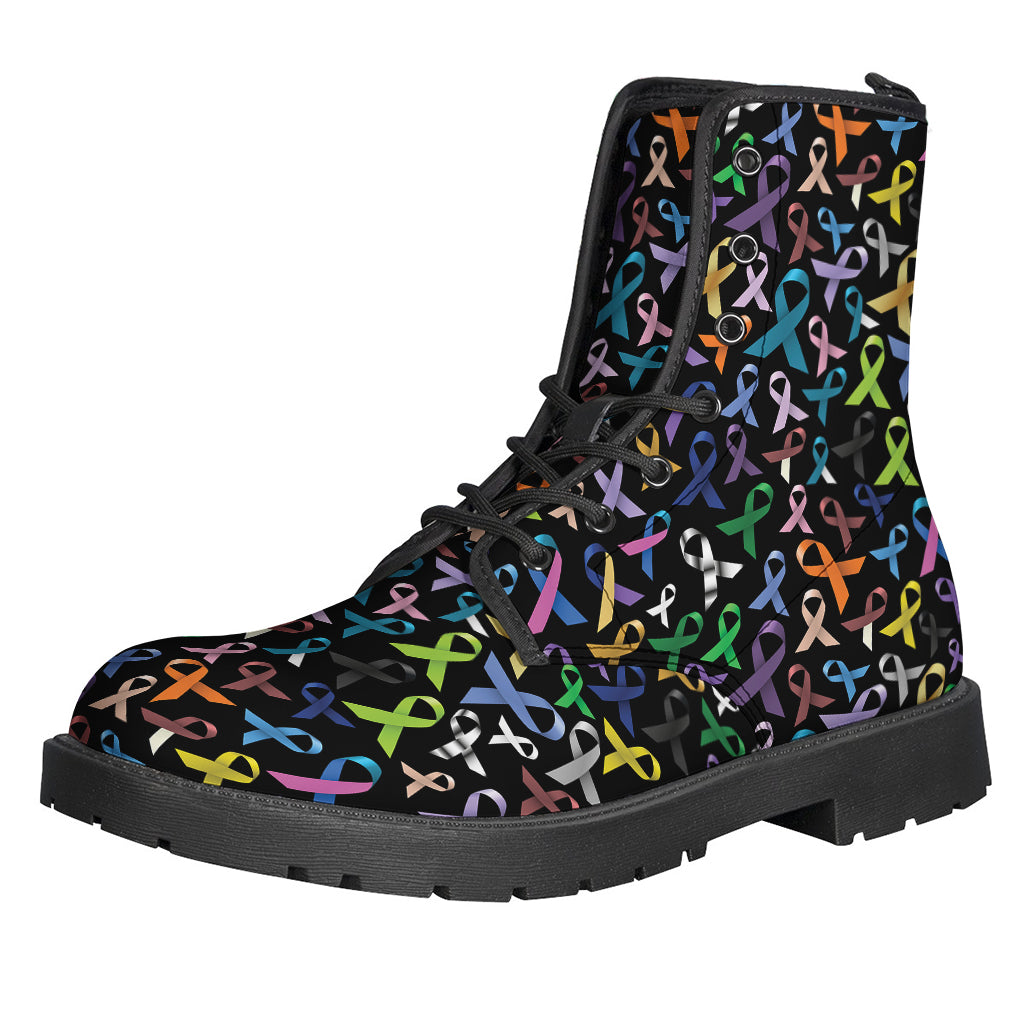 GearFrost presents the ultimate footwear choice for all the free-spirited hippies out there - the Hippies Leather Lightweight Boots. These boots come in a unique All Cancer Awareness pattern print, making them not only stylish but also meaningful. Crafted from high-quality leather, these boots are not only durable but also lightweight, providing all-day comfort for those long festival days or outdoor adventures. Embrace your inner hippie and make a statement with these one-of-a-kind boots from GearFrost.