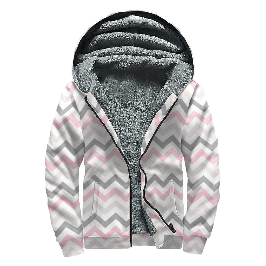 Stay cozy and on-trend with this Pink, White, and Grey Chevron Print Sherpa Lined Zip Up Hoodie from GearFrost. Perfect for hippies and free spirits alike, this hoodie features a vibrant chevron print in pink, white, and grey, adding a pop of color to your wardrobe. The plush Sherpa lining will keep you warm and comfortable during those chilly days and nights. Whether you're heading to a music festival, camping in the great outdoors, or simply lounging at home, this hoodie is the perfect blend of style and comfort. Embrace your inner hippie with this stylish and practical zip-up hoodie.